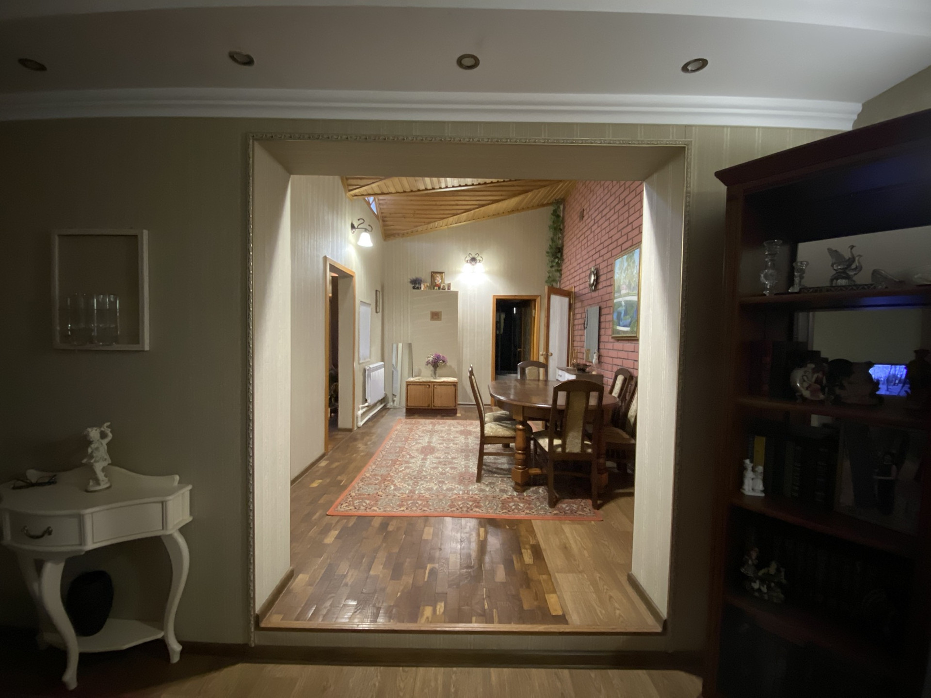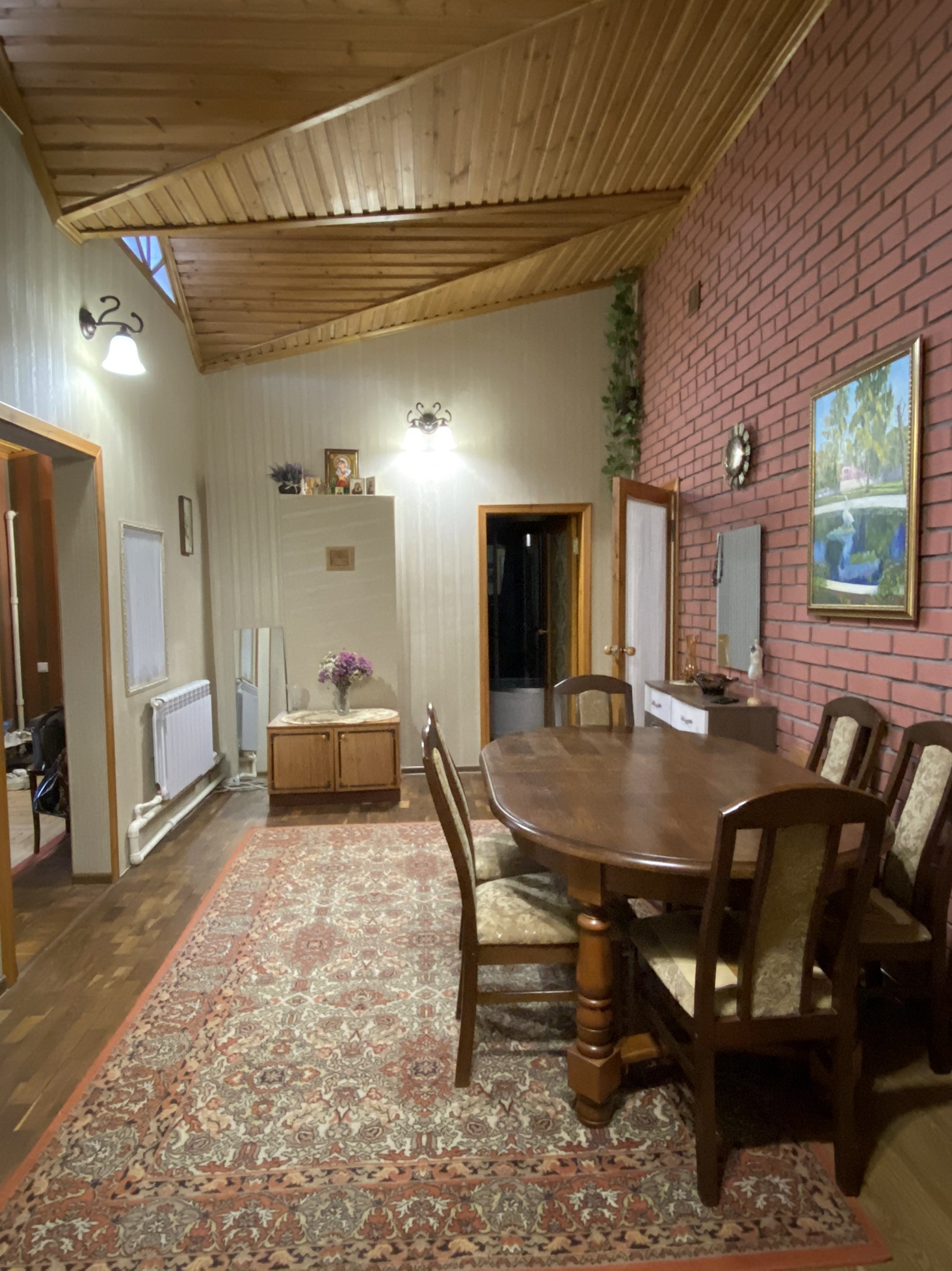 В доме две спальни, гостиная, столовая, кухня, комната отдыха с сауной, бассейном, душевой кабиной. Отдельный дом с отопительной системой. Два капитальных гаража. На участке сруб под баню. Фундамент для теплицы. Дом насыпной, бетонная подушка. Облицован кирпичом и сайдингом. Продажа в связи с переездом.