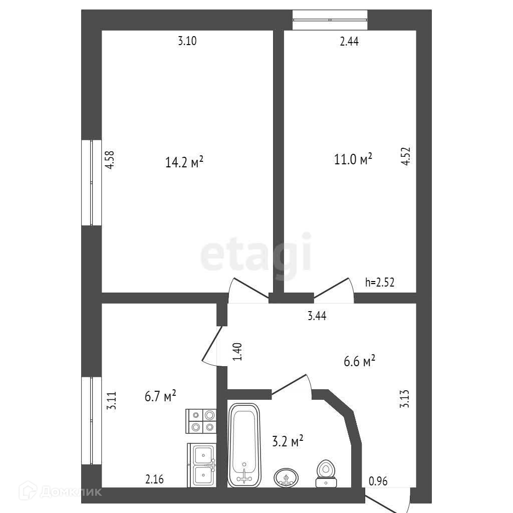Общая площадь 41.7 м2