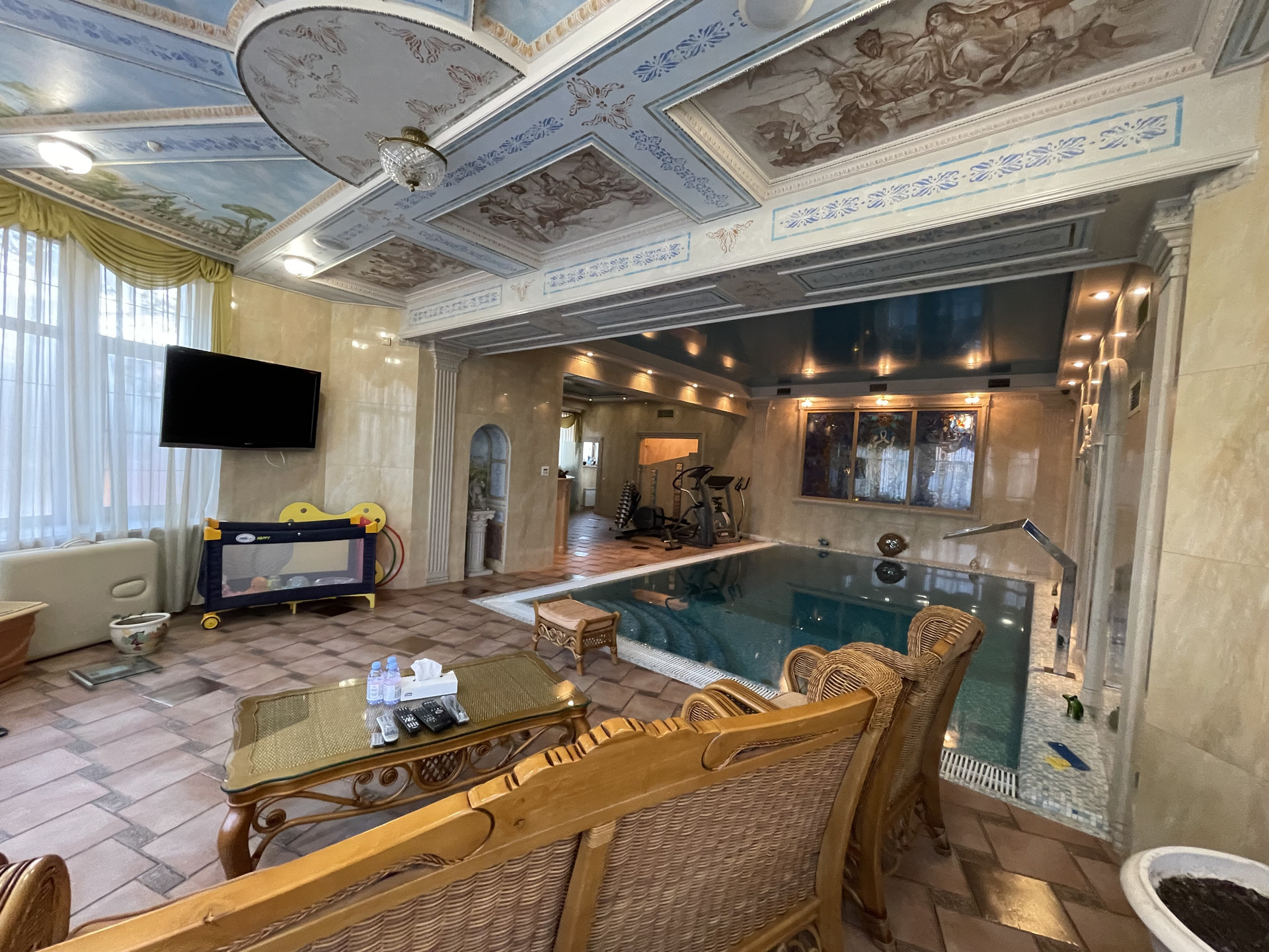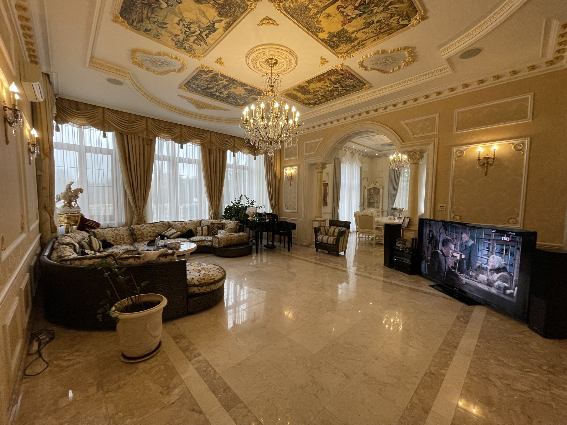 Продается просторный и комфортный кирпичный дом в идеальном состоянии площадью 1100 м2 в деревне Гаврилково с участком 25 соток. Отделка дома выполнена премиальными итальянскими материалами в классическом стиле. В стоимость дома включена мебель и предметы интерьера элитных брендов. К дому подключены все коммуникации (газ, электричество, вода), системы видеонаблюдения и кондиционирования General. В доме 6 спален с санузлами и гардеробными комнатами. В доме есть бассейн c сауной, биллиардная, уютная каминная комната, большая терраса, лифт, домашний кинотеатр. Для наслаждения живой музыкой с идеальным чистым звучанием, в гостиной стоит рояль исполнительского уровня Yamaha (Япония) Кухня оборудована премиальной итальянской мебелью и встроенной профессиональной техникой. В ванных комнатах установлена премиальная сантехника Villeroy & Boch и Jacuzzi.