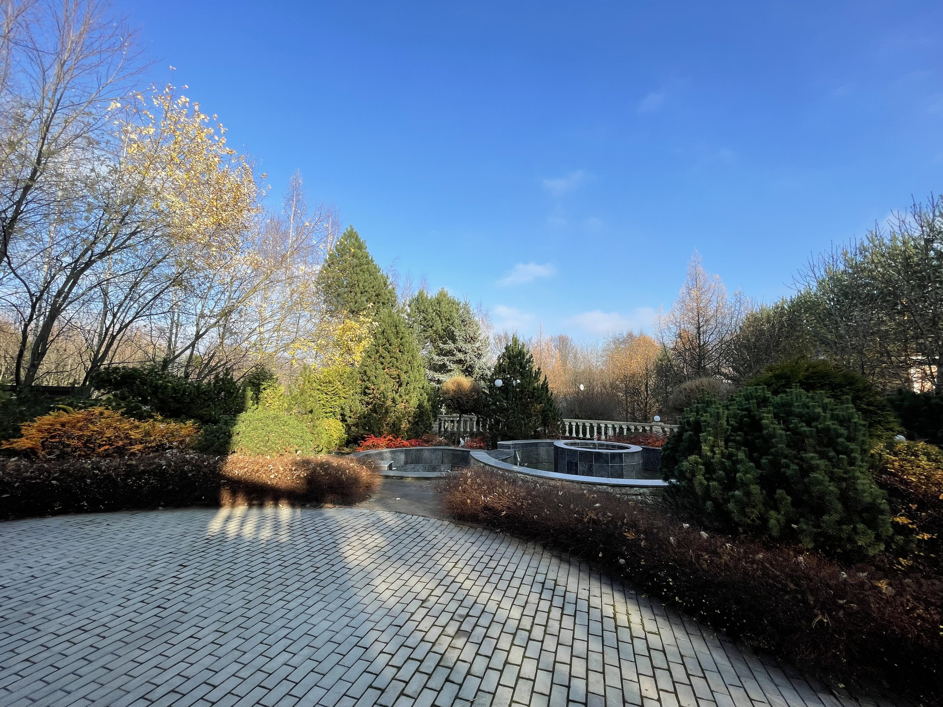 На участке расположен теплый гараж на две машины, на втором этаже комнаты для проживания персонала. Также есть домик для охраны и зона парковки на 8 автомобилей. На участке выполнен ландшафтный дизайн, посажены редкие породы деревьев, растений и цветов, установлены фонтаны, водопад, большая теплая беседка, пруд с рыбами. С верхних этажей дома прекрасно просматривается панорама города Москвы (виден праздничный салют) т.к. дом находится в самой верхней точке поселка. За забором участка находится Химкинский лесопарк с подъемником для лыжников, речкой и дорожками для прогулок. Ближайшее метро Планерная 15 минут на автомобиле, аэропорт Шереметьево 20 минутах езды.