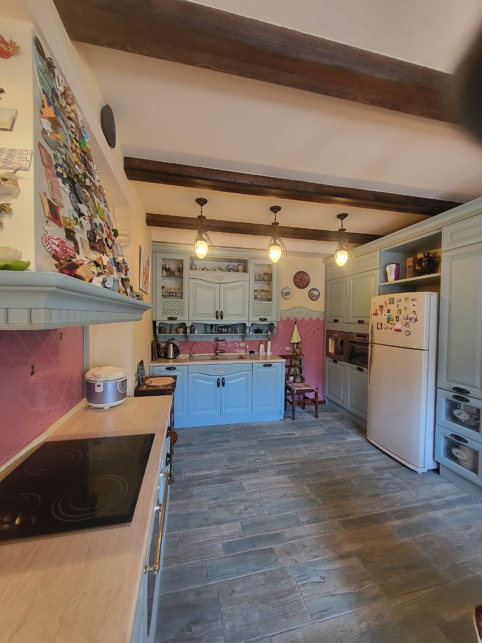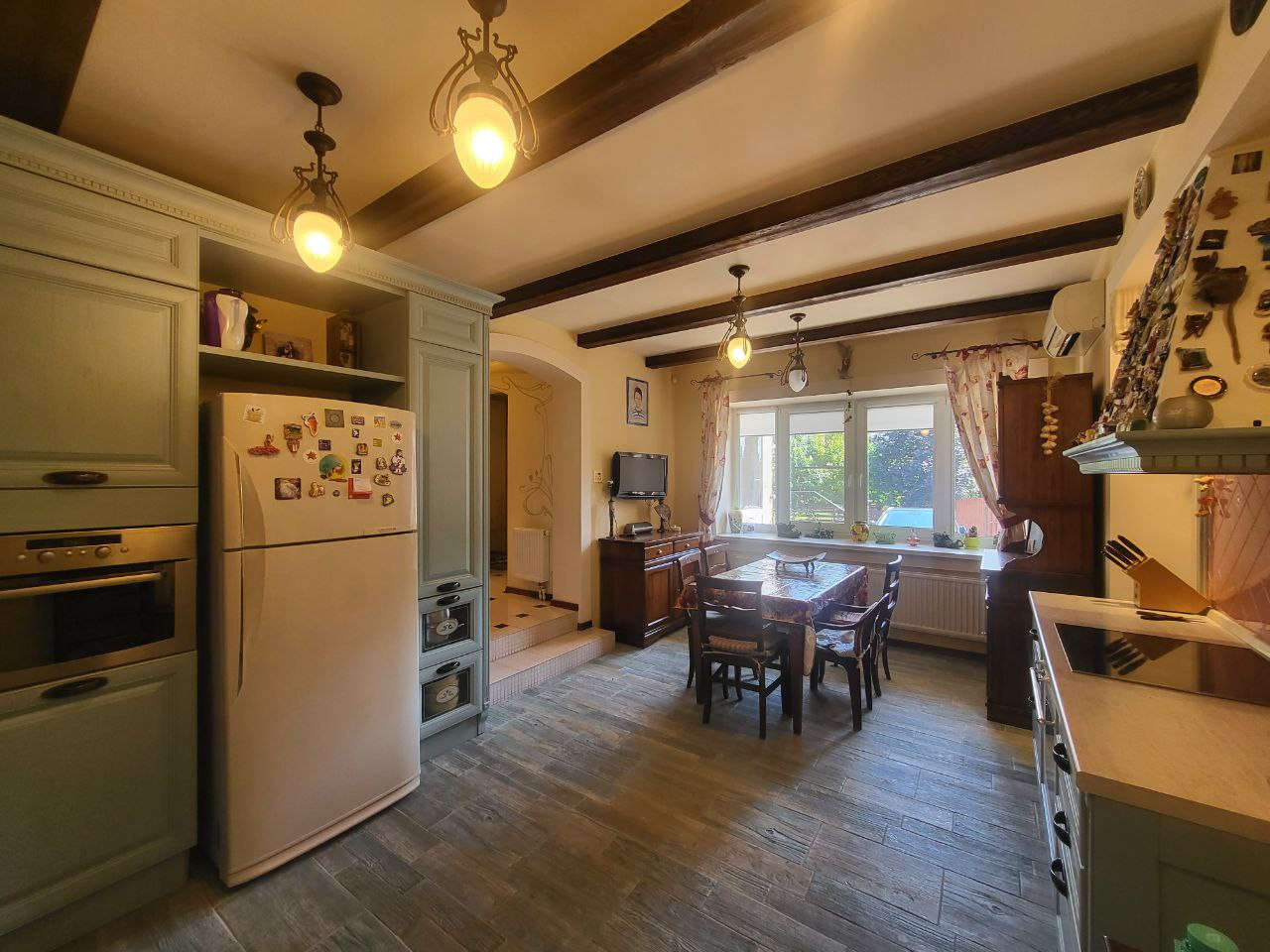 Продается впервые! Красивый, ухоженный таунхаус, с винтажной и дорогой отделкой. Общая площадь дома 190 кв.м., не считая площади двух балконов и веранды, а это еще плюс 20 метров, а так-же прилегающий земельный участок 230 кв.м. Квартал находится на возвышении поселка, красивый вид из окон. Вашем вниманию предлагается отличный вариант полостью обжитого и полностью готового к проживанию таунхауса. Все соответствует фото! Вся мебель и техника включена в стоимость, кроме личных предметов пользования!!! Вся мебель и техника — это заказные позиции. Кухня и большинство мебели — производство Италия, включая шкафы гардеробной комнаты на третьем этаже. Планировка таунхауса: 1 этаж — зона кухни включая всю мебель и технику + кондиционер, зона СПА: кедровая бочка, сауна на 4 человека, соляная стена, душевая кабина с ведром для обливания, санузел, бойлерная-прачечная с профессиональным котлом и накопителем, стиральная и сушильная машины Миле, входная парадная группа, состоящая из просторного предбанника и холла с двумя встроенными шкафами, выход на просторный участок с елями и открытой верандой. Второй этаж — санузел с душевой кабиной, большая открытая зона гостиная с выходом на видовой открытый балкон (вид на поселок), большая детская комната, раззонированная на две части — обучение и отдых. Третий этаж занимает зона мастер-спальни, которая раззонирована на несколько частей: зону большой гардеробной с окнами, зону кабинета с выходом на застекленный балкон, зону спальни с панорамным окном и видом на участок, а также зону санузла с окном. Повсюду в доме встречаются дорогие декоративные элементы, удачно продуманные дизайнером: витражное круглое окно в гостиной соединяющееся с лестничным пространством, кованные перила, сделанные на заказ под стиль дома, дорогие керамогранитные полы в зоне гостиной на втором этаже, дорогая напольная плитка на в кухне на перовом этаже, подобранная в стиль кухни. Таунхаус находится на обслуживании ТСЖ, поставлен на пульт охраны быстрого реагирования, все коммуникации центральные, все соседи живут круглогодично. Эдем — отличное место для проживания всей Вашей семьи. Более комфортного и доступного места в ближайшем Подмосковье просто нет. Во-первых близость ко МКАД, проезд до МКАД без пробок, полная инфраструктура поселка, включающая школу, детский сад, продуктовый сетевой магазин Кнакер, фитнес клуб с бассейном, автомойку, химчистку, озон, вайлдберрис, аптеку, рестораны и кафе, прогулочные зоны, детские и спортивные площадки и т.д.