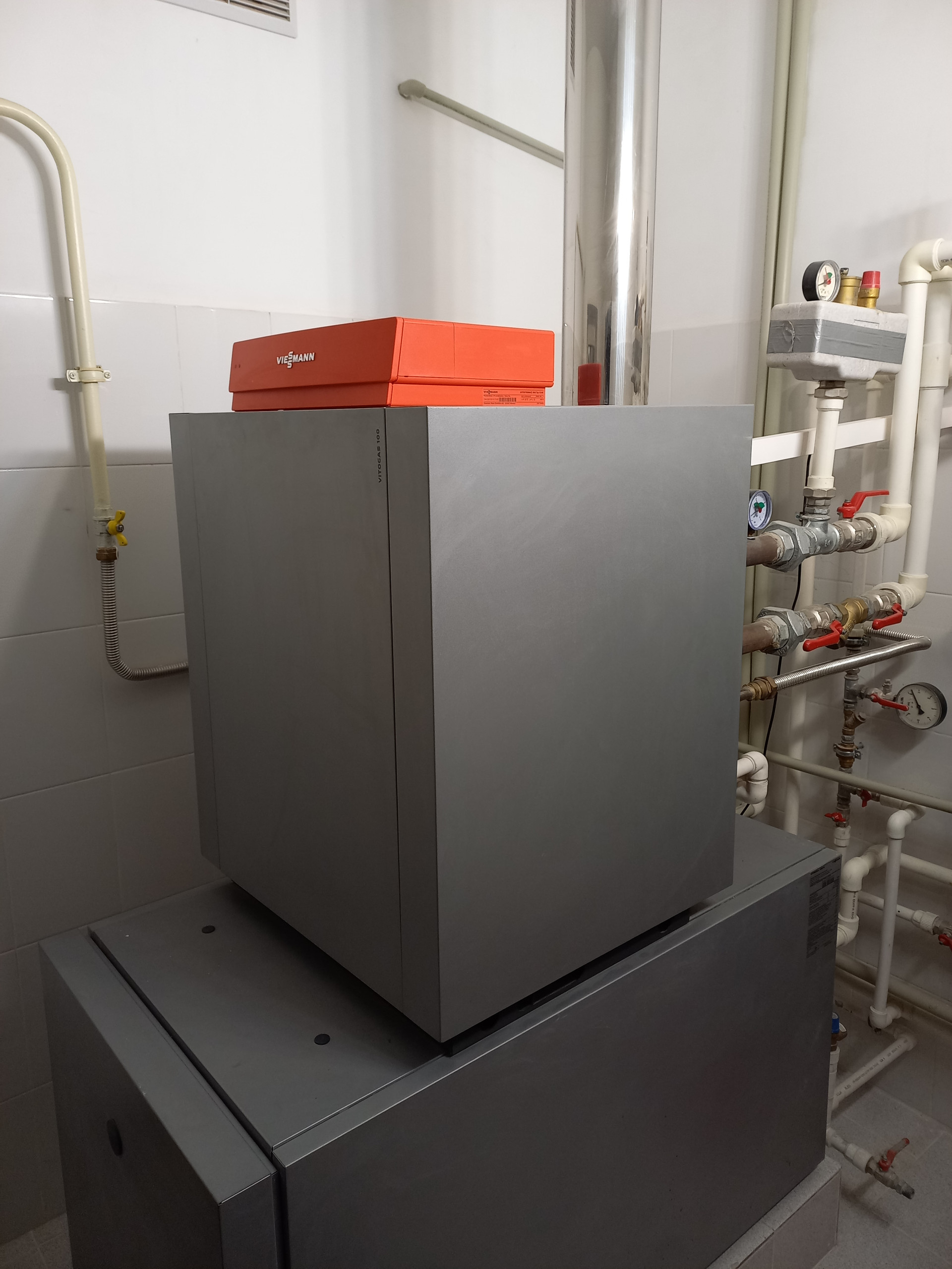 Все коммуникации центральные. Магистральный газ. Центральное водоснабжение. Канализация. Электроэнергия. Газовый котел – VIESMANN. Бойлер подставной на 200 литров – VIESMANN Vitocell 100-H (для бесперебойной подачи горячей воды в случае максимального одновременного расхода).