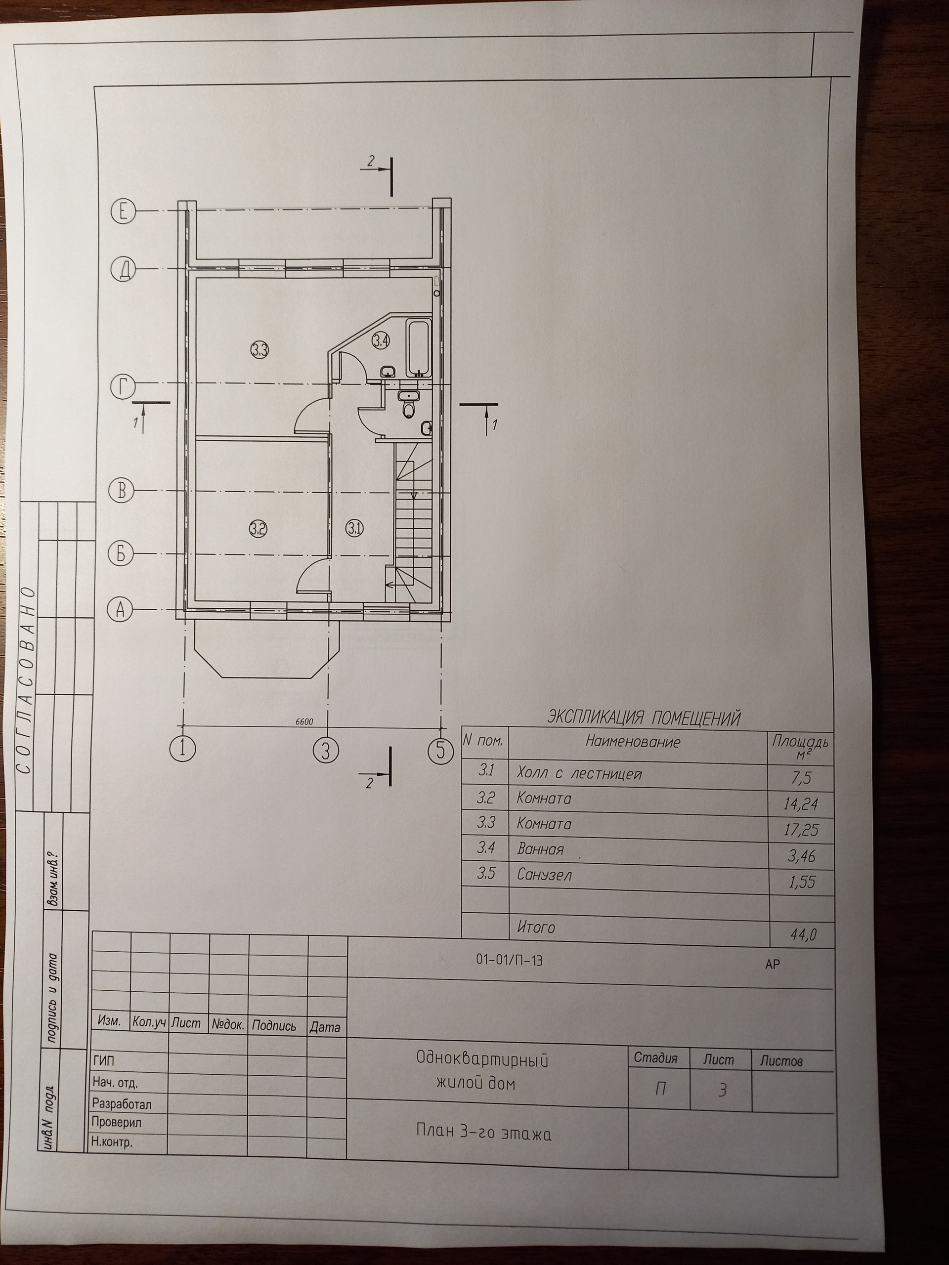 3-ий этаж: 44,0 м. кв., холл с лестницей, комната, комната, ванная, санузел.