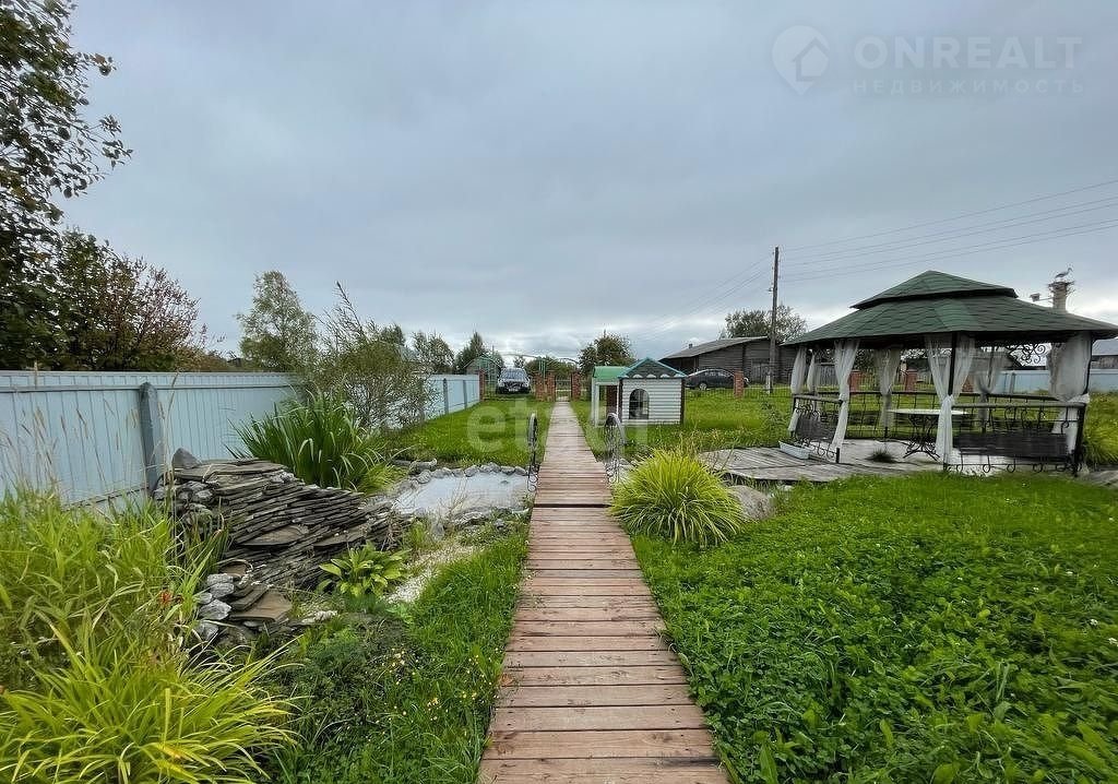 Участок полностью разработан и ухожен, есть садовые фонтаны, огорожен забором. На участке удобно расположились: двухэтажный дом, баня, купель, беседка. Площадь дома 105 кв метров, в доме расположены кухня-гостиная с рабочим камином, 3 комнаты, сауна. Отопление в доме электрическое. Около дома удачно расположены отдельно стоящая баня, 2 беседки (крытая и закрытая) с мангалом, шикарная купель и детский домик.