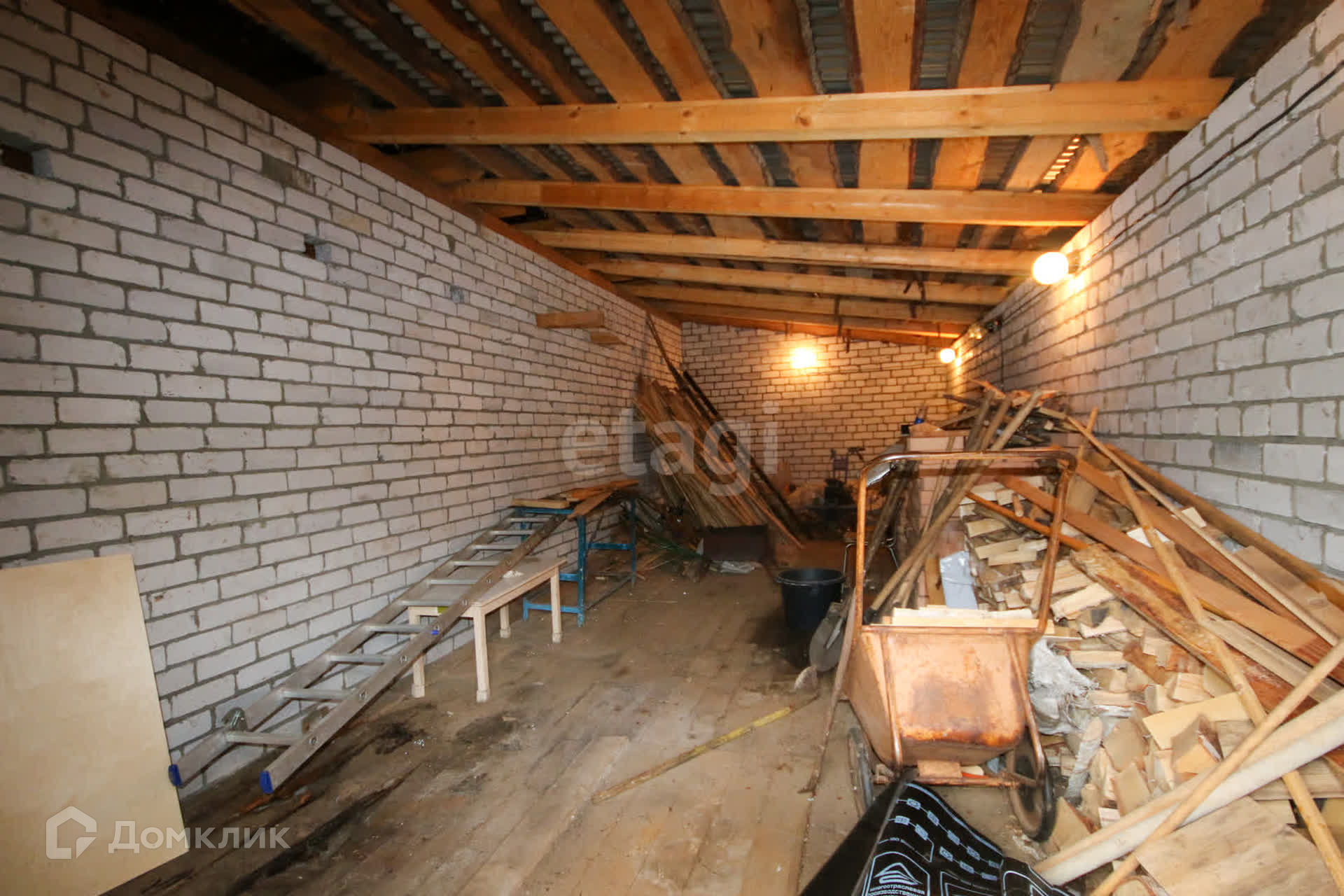 Гараж во всю длину дома + парковочное место перед участком.