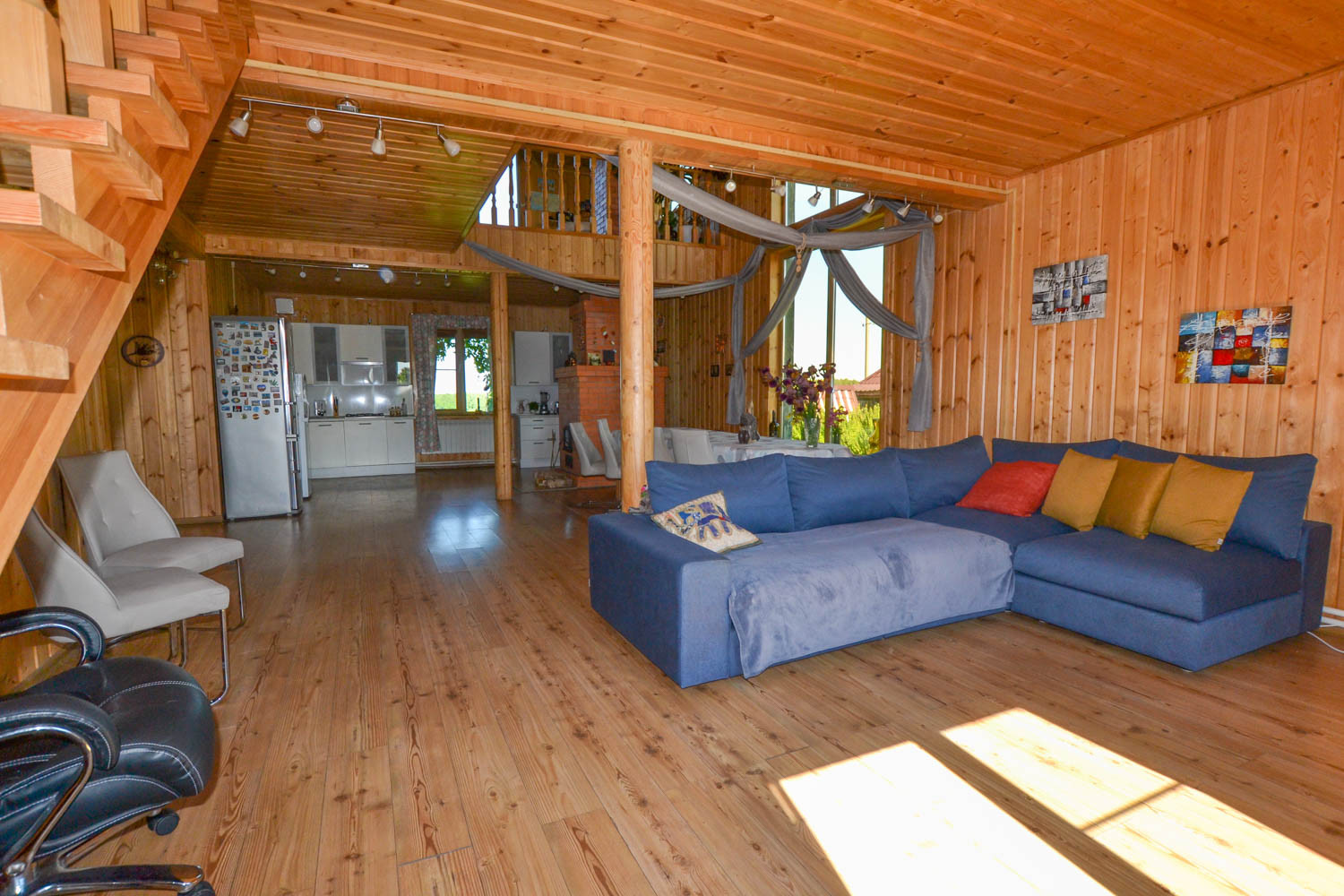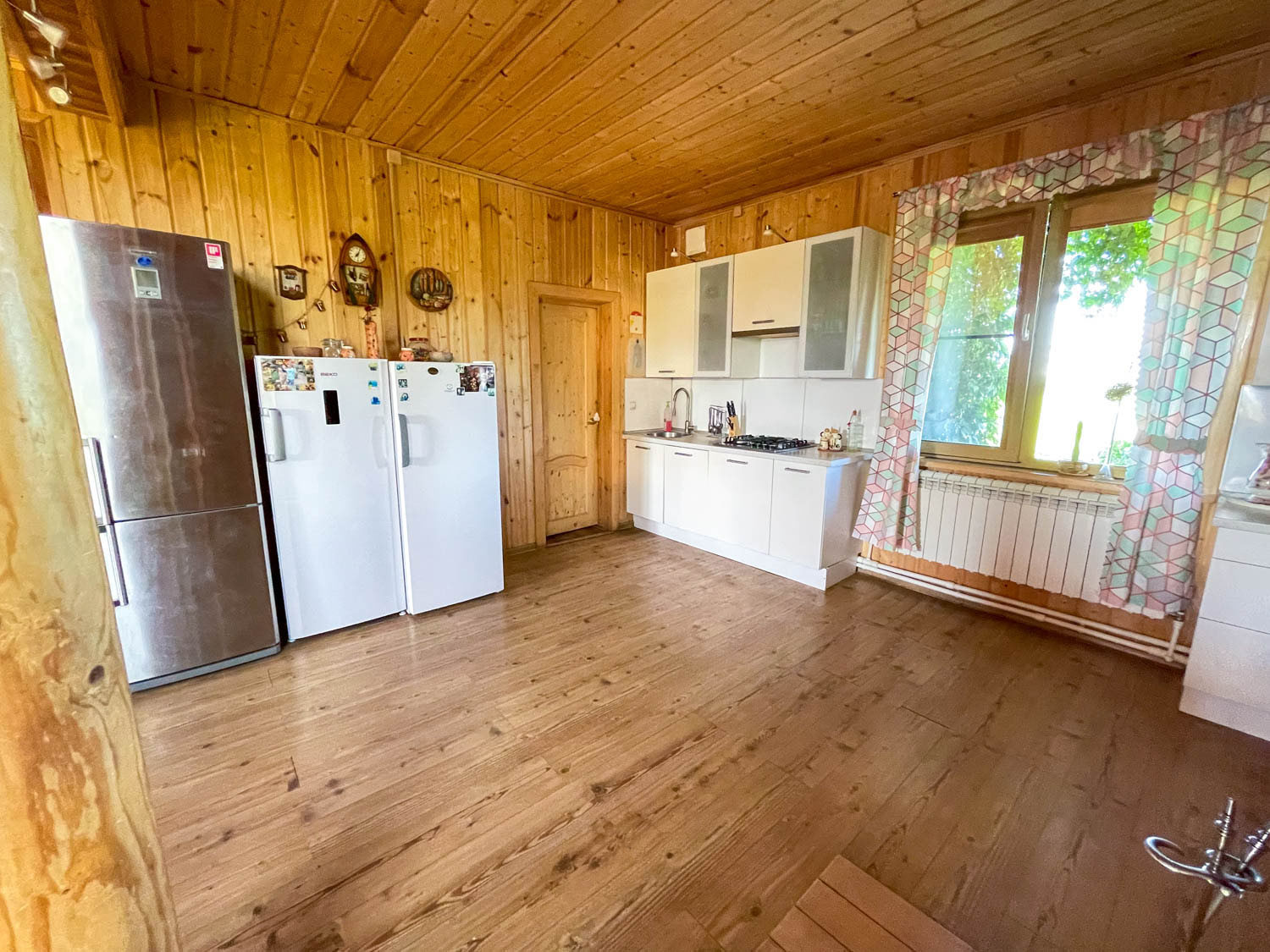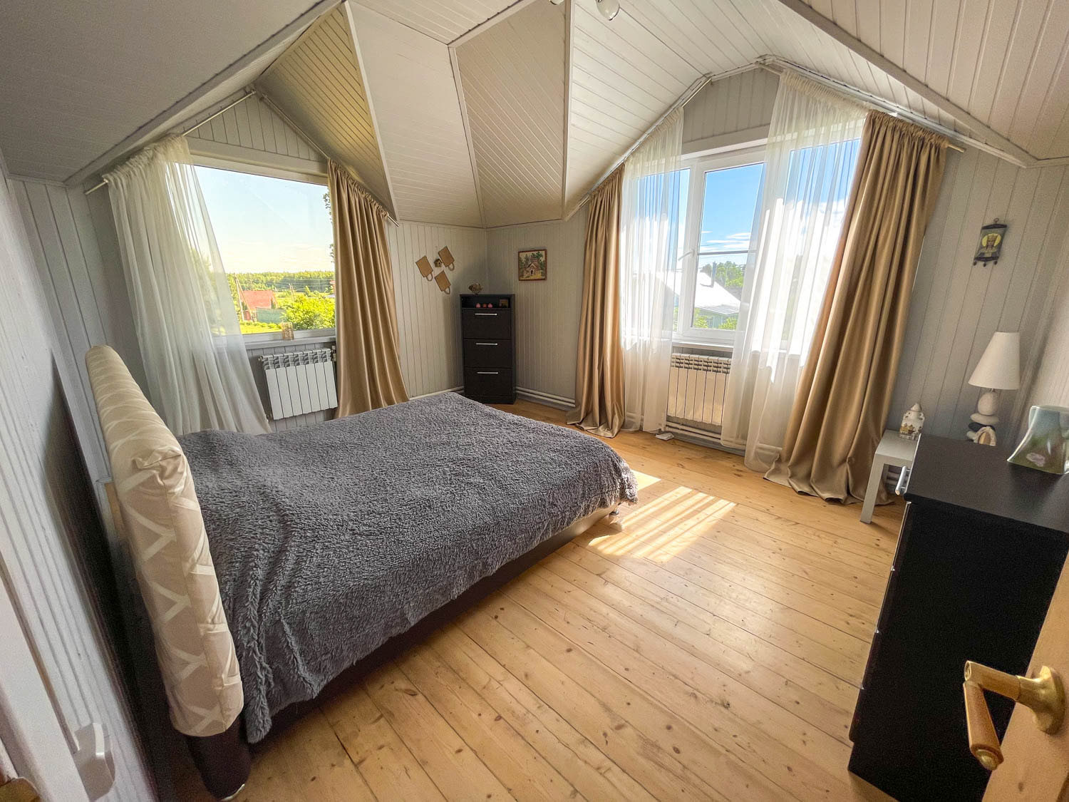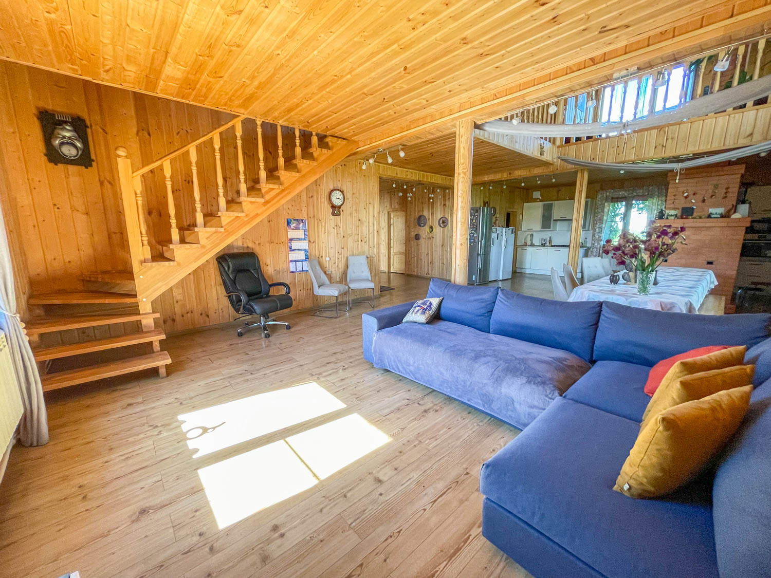 Комфортный жилой дом с земельным участком в деревне Гаврилово Лотошинского городского округа (135 км от МКАД по Новорижскому шоссе). Двухэтежный брусовой дом площадью 240 кв.м. 2013 года постройки. Фундамент – железобетонный сваи на 2,5 метра, кровля – металлочерепица.  Наружная отделка дома – имитация бруса. Дом утеплен с 2 сторон: пароизоляция и утеплитель 15 см, дом для круглогодичного проживания.  Отопление – АОГВ (магистральный газ), печь. Вода из собственного 11-метрового колодца, заведена в дом и баню. Электричество подключено 15 кВт 3 фазы.  Септик переливной 10 куб.м. Планировка первого этажа: прихожая, холл, кухня-гостиная, совмещенный санузел с душевой, бойлерная, две спальни; на втором этаже: четыре спальни, холл, балкон. В доме имеется погреб.