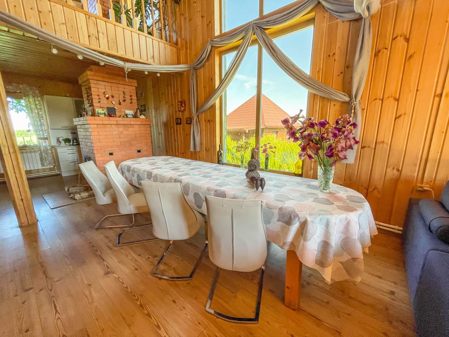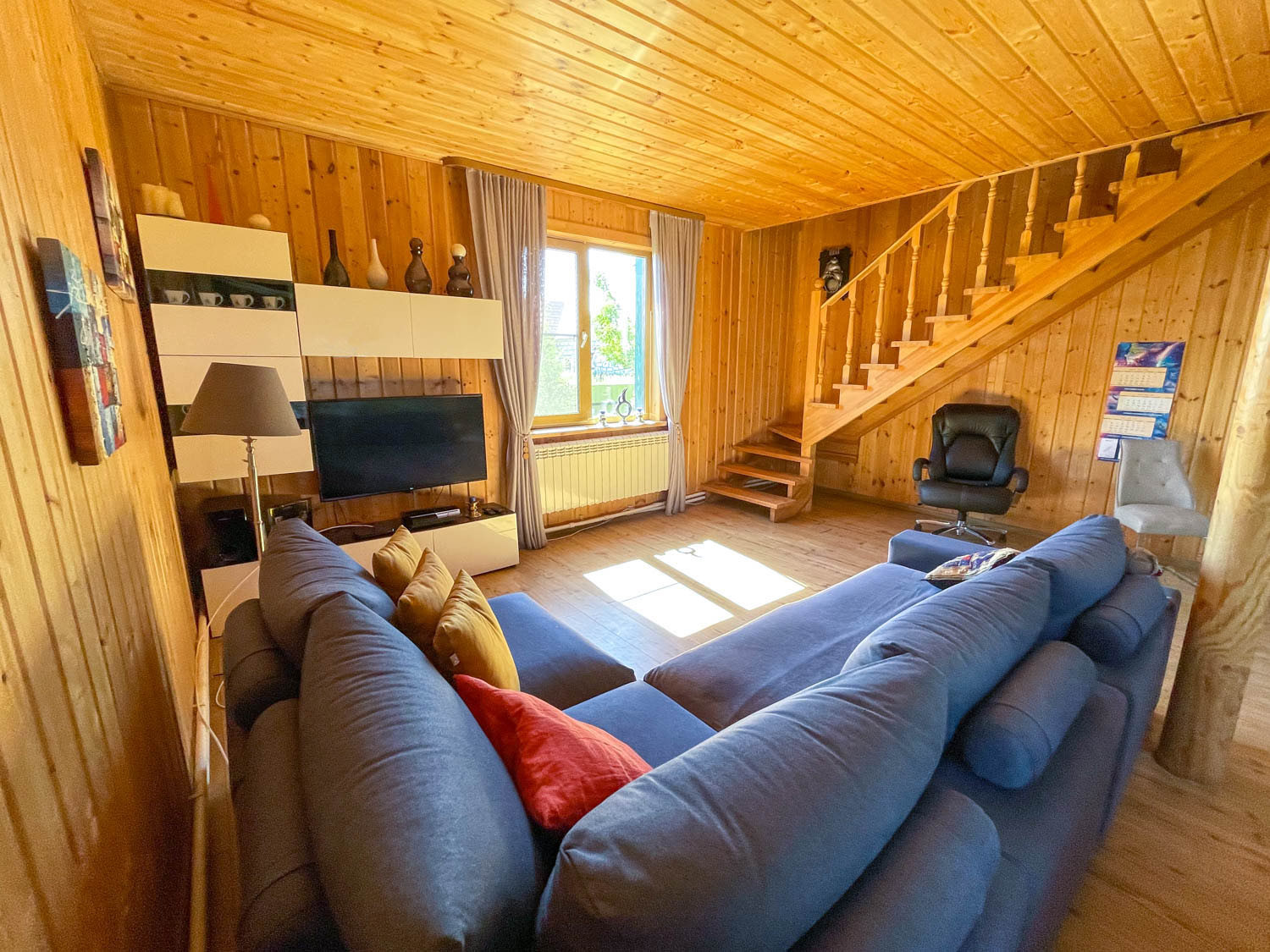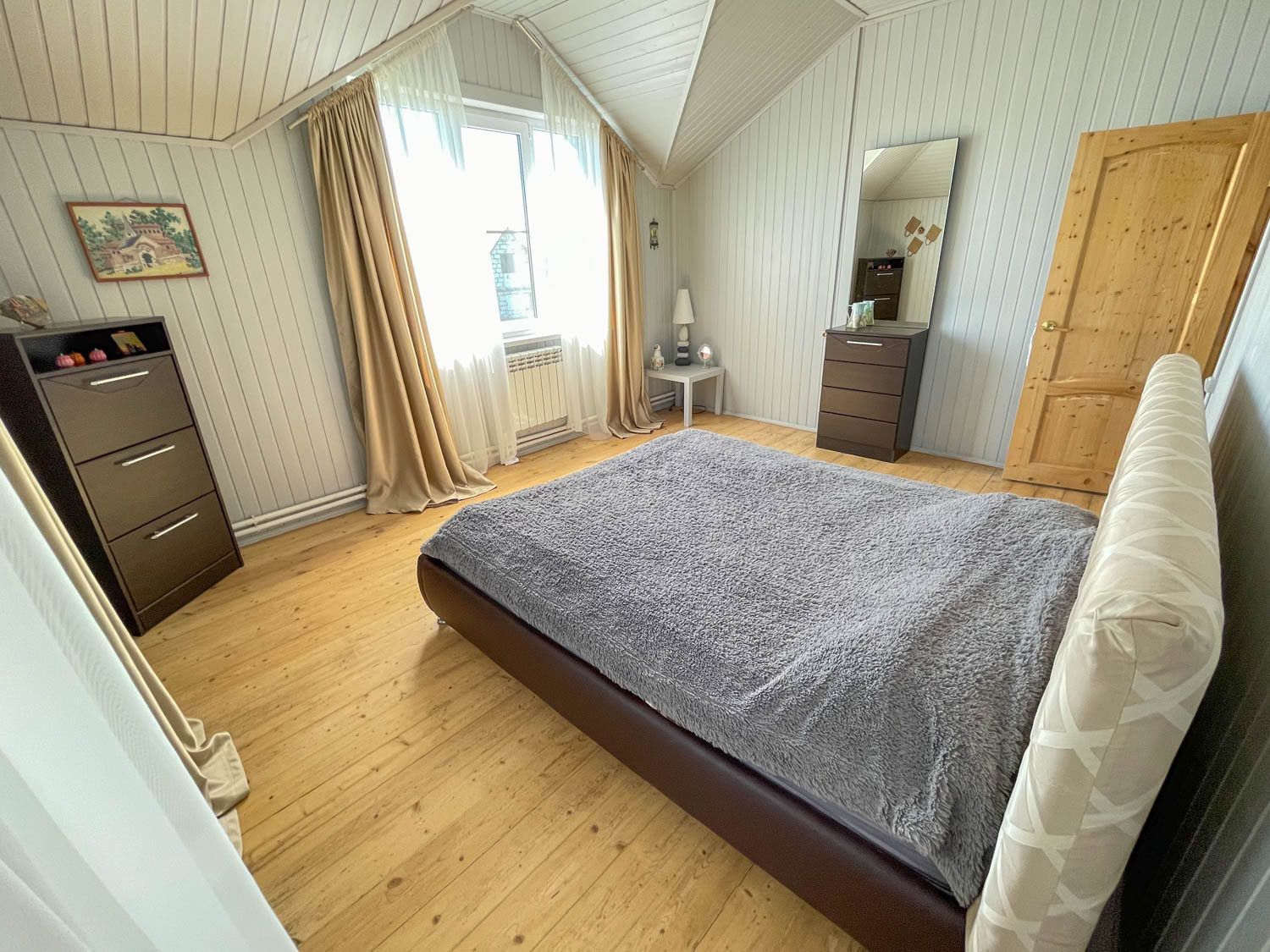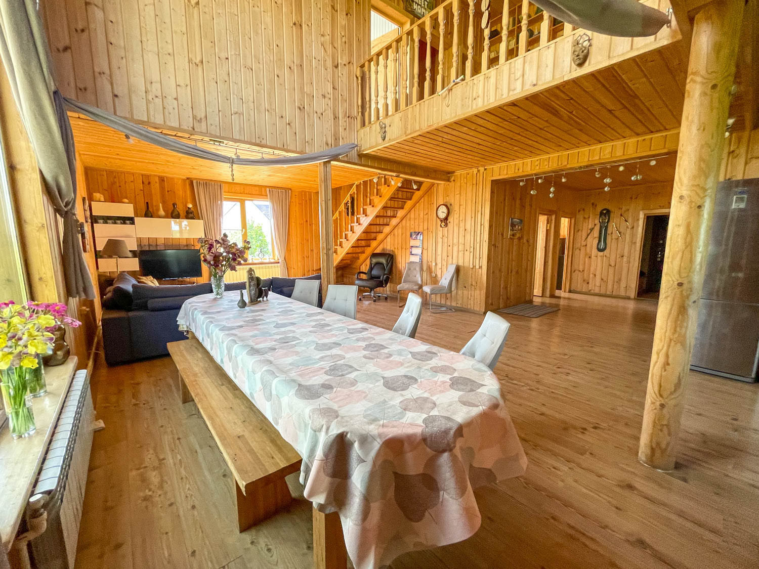 Комфортный жилой дом с земельным участком в деревне Гаврилово Лотошинского городского округа (135 км от МКАД по Новорижскому шоссе). Двухэтежный брусовой дом площадью 240 кв.м. 2013 года постройки. Фундамент – железобетонный сваи на 2,5 метра, кровля – металлочерепица.  Наружная отделка дома – имитация бруса. Дом утеплен с 2 сторон: пароизоляция и утеплитель 15 см, дом для круглогодичного проживания.  Отопление – АОГВ (магистральный газ), печь. Вода из собственного 11-метрового колодца, заведена в дом и баню. Электричество подключено 15 кВт 3 фазы.  Септик переливной 10 куб.м. Планировка первого этажа: прихожая, холл, кухня-гостиная, совмещенный санузел с душевой, бойлерная, две спальни; на втором этаже: четыре спальни, холл, балкон. В доме имеется погреб.
