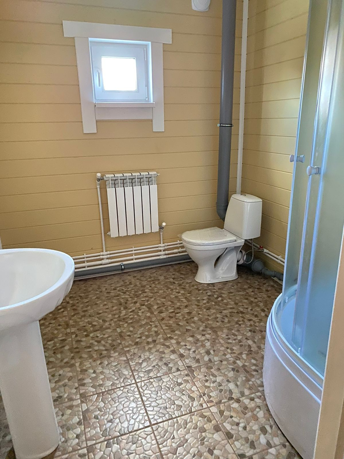 - Вода скважина на участке, водонагреватель, вода проведена в кухню и санузлы. В санузлах - душевая кабина, раковины, унитазы, сантехника.
