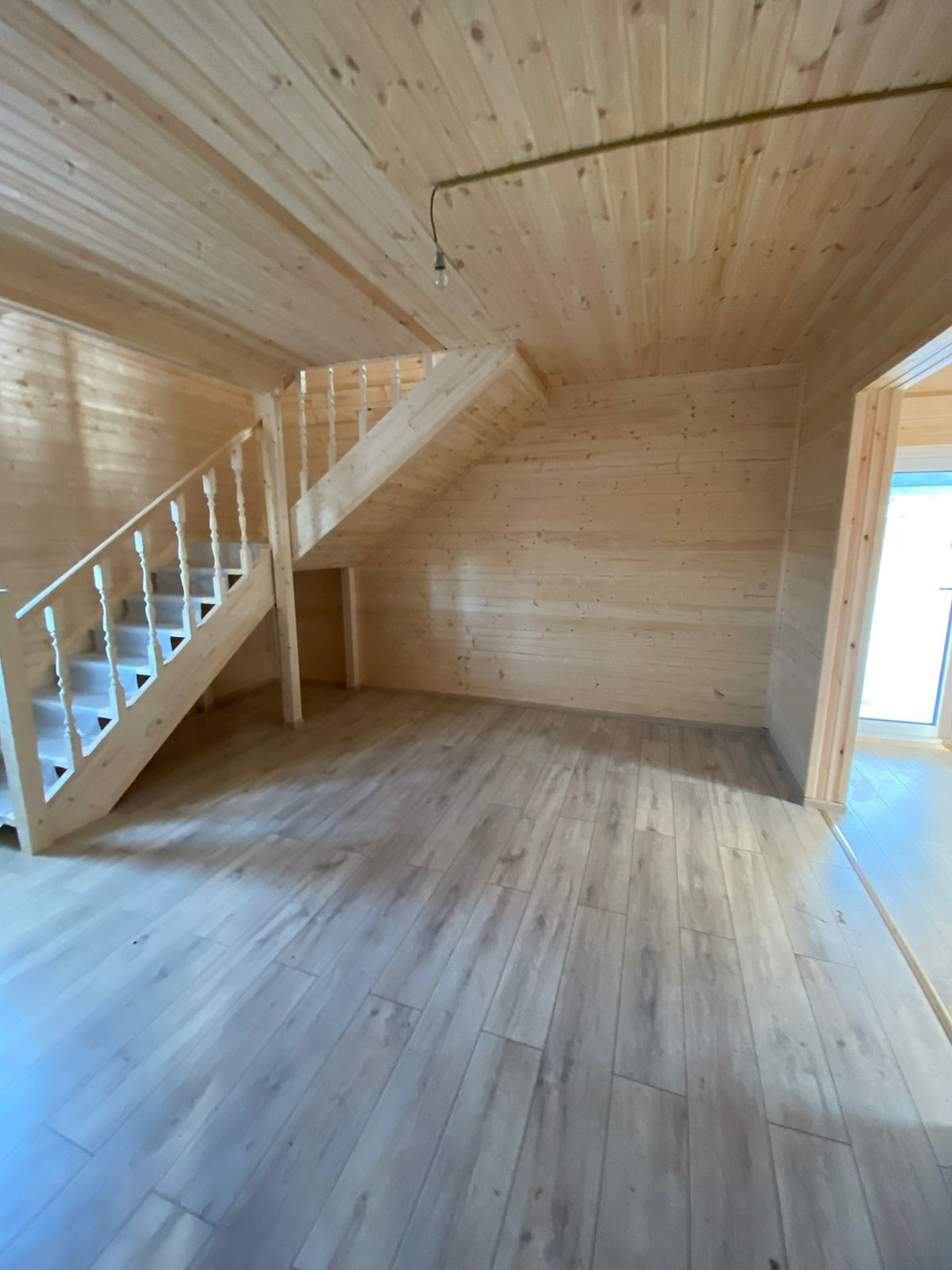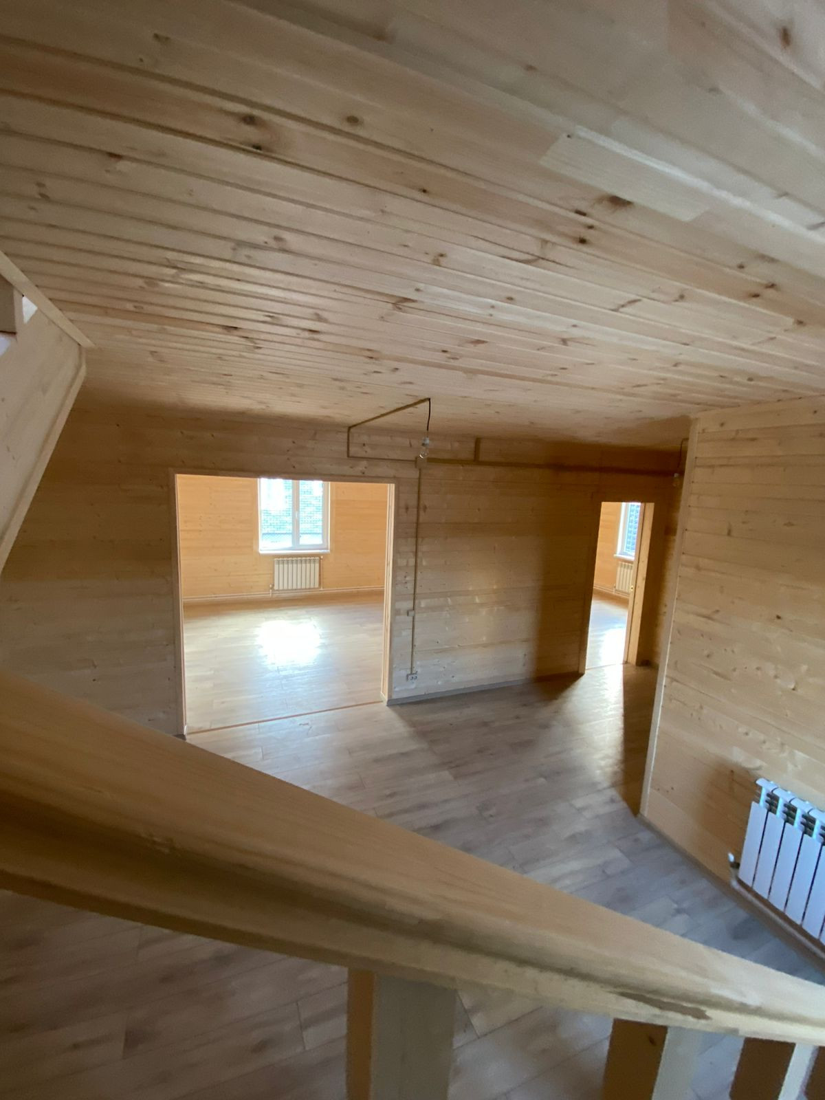 - Металлическая входная дверь, деревянные межкомнатные двери, пластиковые окна, лестница на второй этаж.