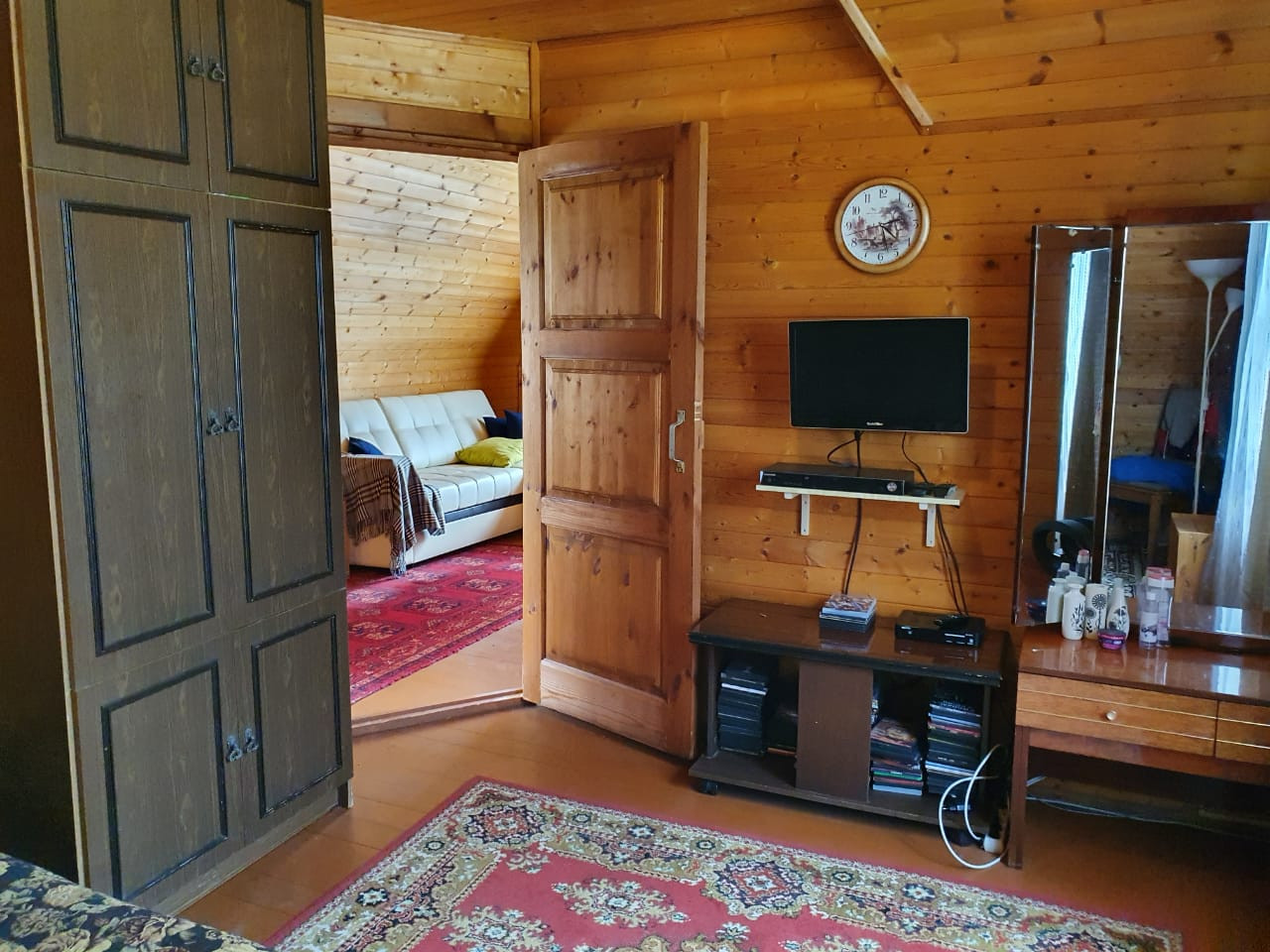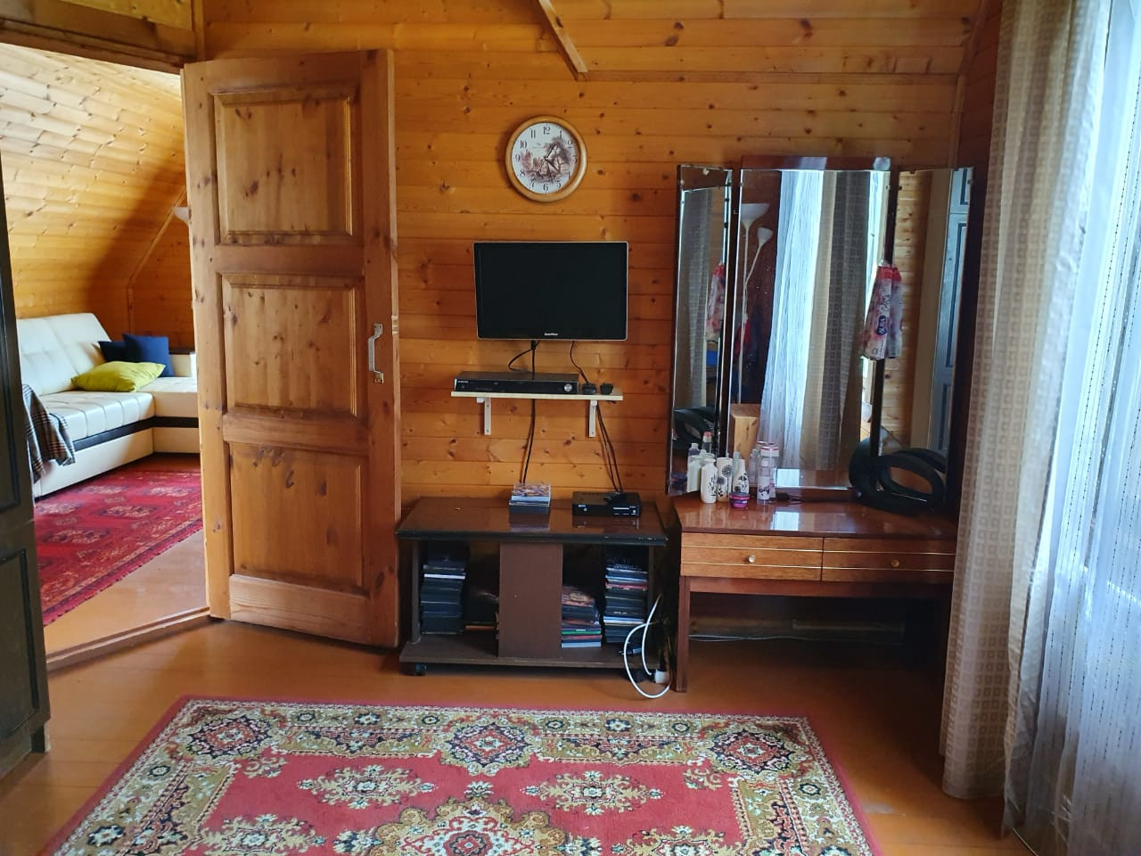 Продается дом 45 км от МКАД по Ленинградскому шоссе в д. Гигирево Солнечногорский район (зарегистрирован как жилой, готов к проживанию) 2-х этажный 81,1 кв.м из бруса 150*150, утеплен. 1-ый этаж: прихожая, кухня 15,5 кв.м, комната 20 кв.м, имеется помещение под санузел; 2-ой этаж: холл, комнаты 11,2 кв.м и 7,1 кв.м, Фундамент-бетонные блоки. В доме свет, отопление: электрическое, вода в дом не заведена-на участке колодец (20 колодец). Дом-баня с террасой из бревна 60 кв.м, (баня не функционирует), печное отопление. Участок правильной формы, 21 сотка, ИЖС. Деревня ГАЗИФИЦИРОВАНА, газ по границе. На участке расположены: хоз.блок, беседка; растут березы, хвойные деревья, плодовые деревья и кустарники. В 20 минутах ходьбы остановка общественного транспорта, ходит автобус до г. Солнечногорска. Цена 5200000 рублей.