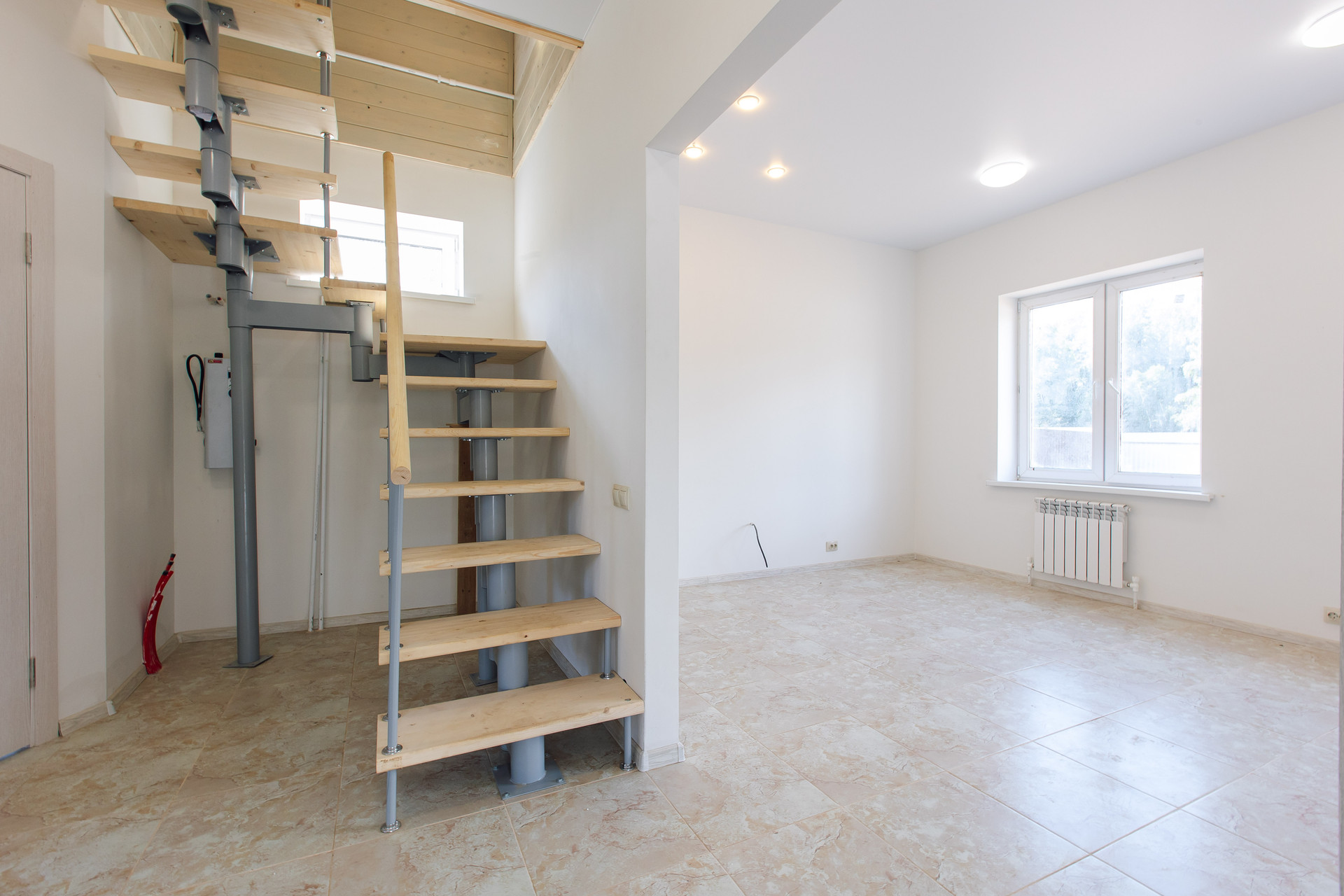 ПЛАНИРОВКА: Первый этаж - прихожая, большая кухня-гостиная 20 кв.м, комната 10 кв. м., санузел 6 кв.м. и кладовая под лестницей, холл 7 кв.м.; Втором этаж - две спальни (19 кв.м. и 13 кв.м.), санузел 6 кв.м. и холл 3 кв.м. Лестница металлическая, второй этаж мансардный.