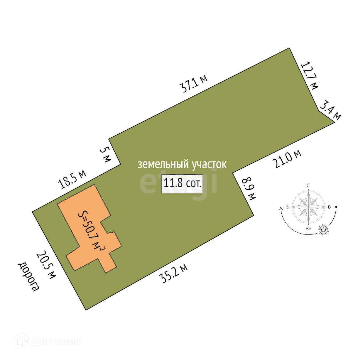 Площадь участка 11.8 сот.