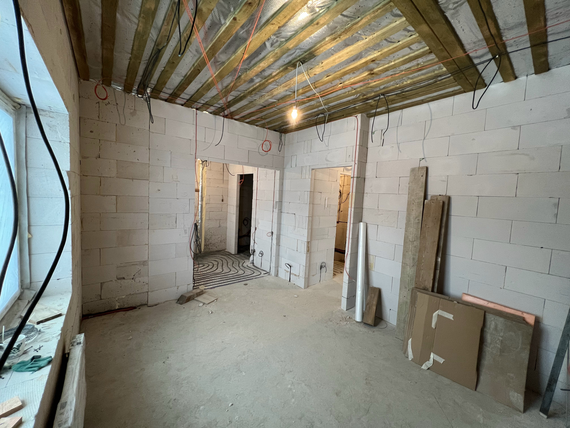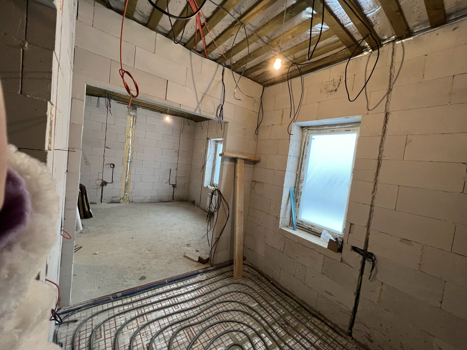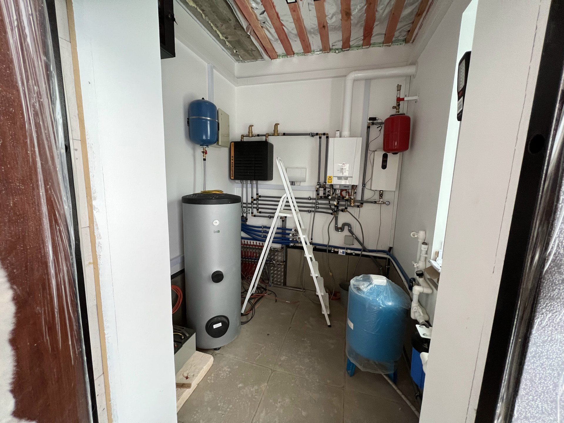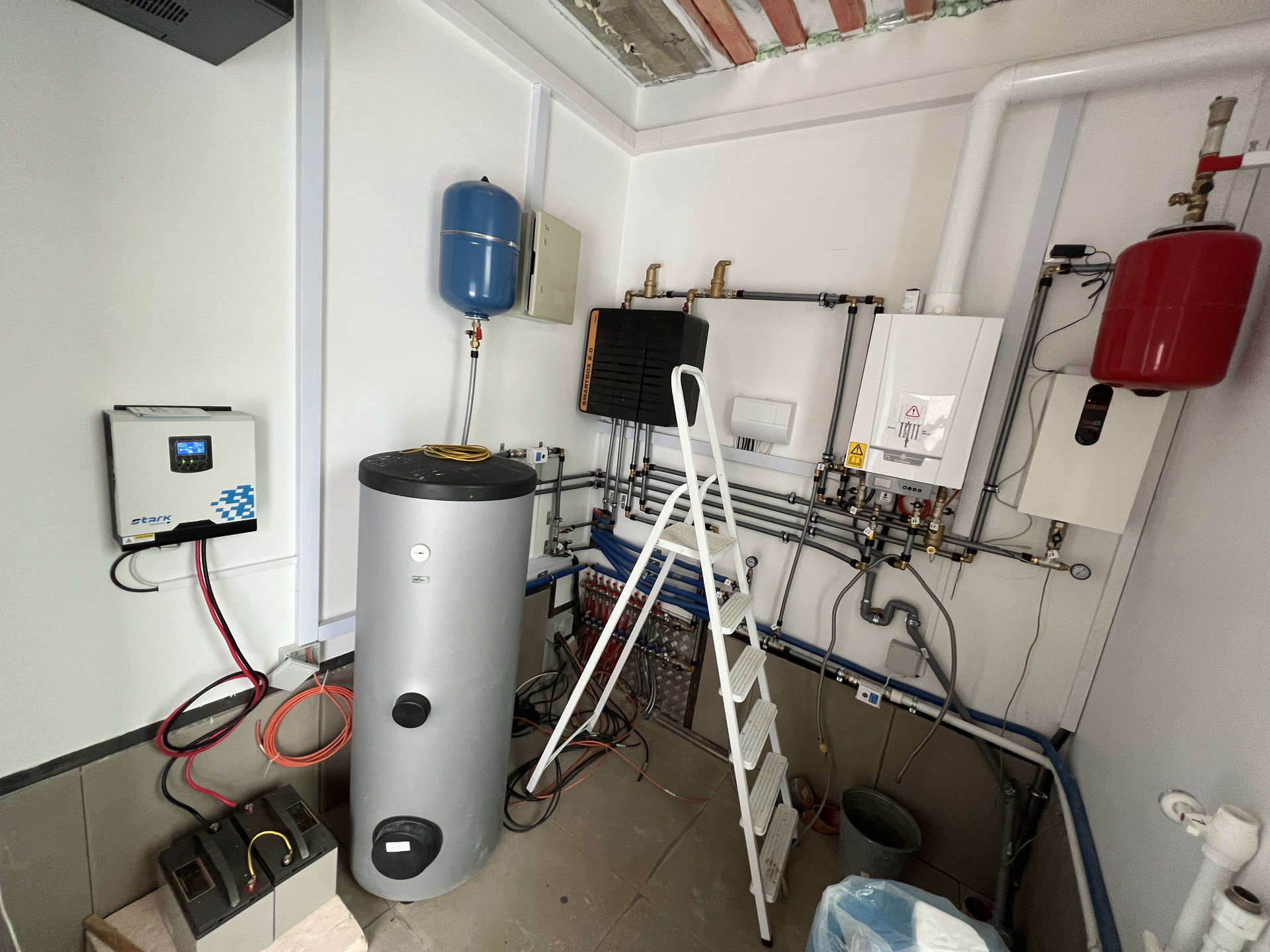 ЭЛЕКТРИЧЕСТВО. Подведено электричество от поселка, возможно расширение до 15 кВт. Дополнительно предусмотрен генератор в качестве резервного питания. Котел, насосы и другая чувствительная электроника заведены на инвертор с двумя батареями, которые позволят работать 1-2 дня без внешнего питания.