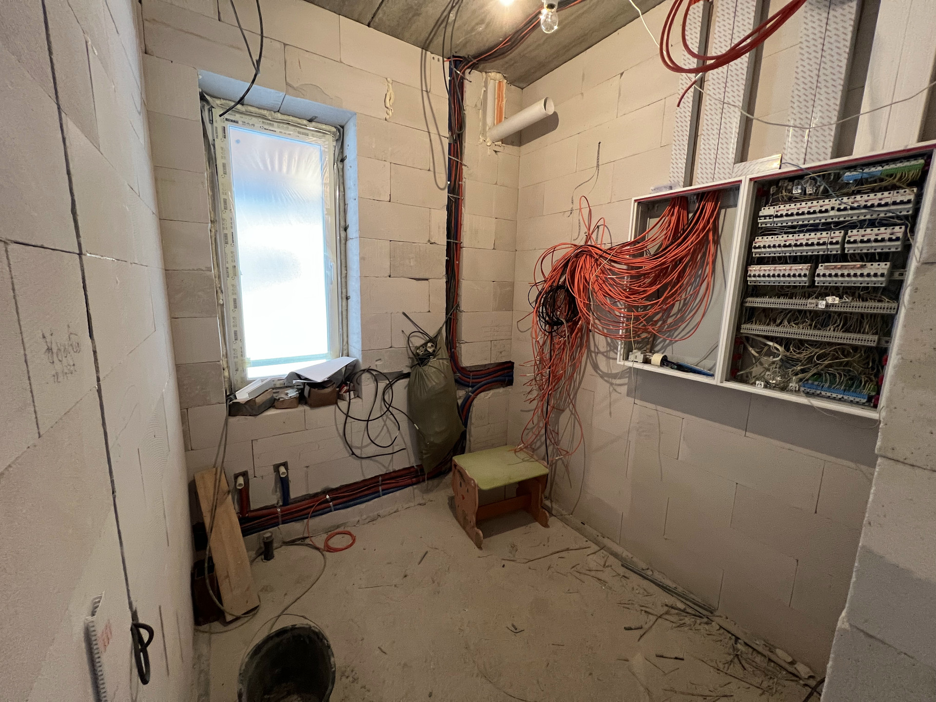 УМНЫЙ ДОМ. Дом планировалось эксплуатировать с системой "умный дом", которая регулирует температуру, открытие дверей, собирает показания счетчиков. Из полезностей - умные алгоритмы, которые в ночное время автоматически включают подсветку до туалета, чтобы не слепить глаза, а в дневное - обычный свет. По проекту умного дома уже собран щит ЭОМ и произведена разводка электричества, сам умный дом докупается отдельно.