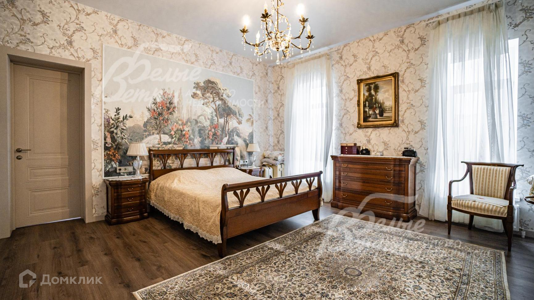 Внутренняя отделка: интерьер и отделка выполнены в классическом стиле в светлых, теплых тонах. На полу итальянский керамогранит с подогревом. На стенах виниловые итальянские обои, в гараже коллекционная плитка (на полу и на стенах). Белые натяжные потолки. На стене в мастер-спальне художественная фреска в стиле Прованс. Сантехника премиальных марок - Devon Devon (Италия), Roca (Испания), FIORE (Италия). Все межкомнатные двери PROFIL DOORS премиальная линейка, серия U, цвет Санд. Входная дверь массивная со стеклянными вставками и узорами..