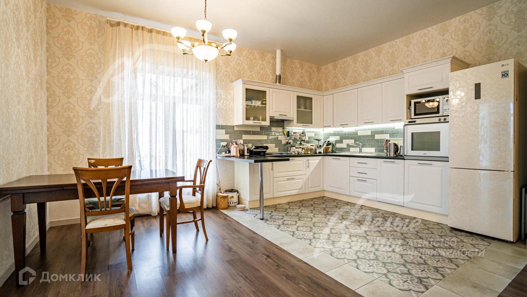 Мебель, оборудование: кухня в современном стиле, белая. Холодильник белый LG с волнистыми песочными узорами, духовой шкаф GAGGENAU (Германия), плита Gorenje (Словения), вытяжка Hansa (Польша). В мастер-спальне встроенный итальянский шкаф BENEDETTI MOBILI с фресками молочных и чайных оттенков. В ванной комнате при мастер-спальне качественная массивная итальянская мебель..
