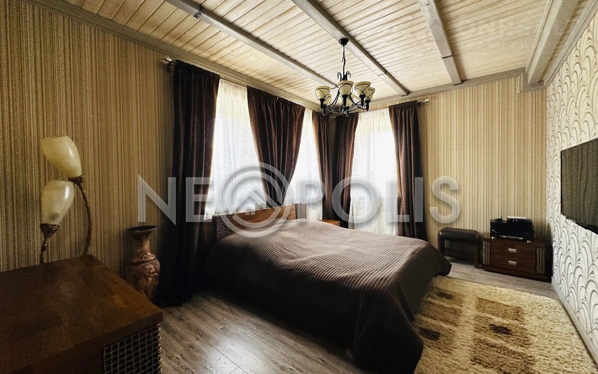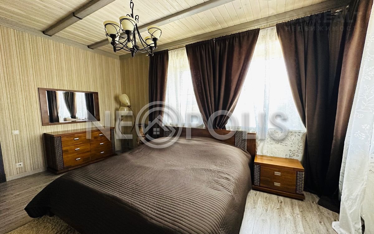 У основного дома удобная планировка: на первом этаже располагается спальня со своей гардеробной и ванной комнатой. Интерьер гостевого дома продуман до мелочей и полностью готов к проживанию. Все коммуникации центральные.