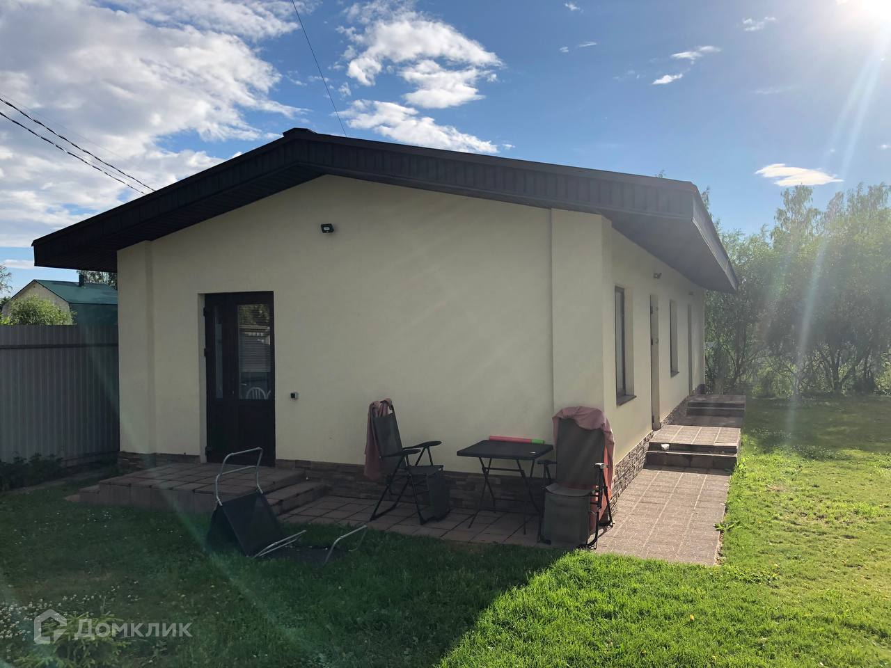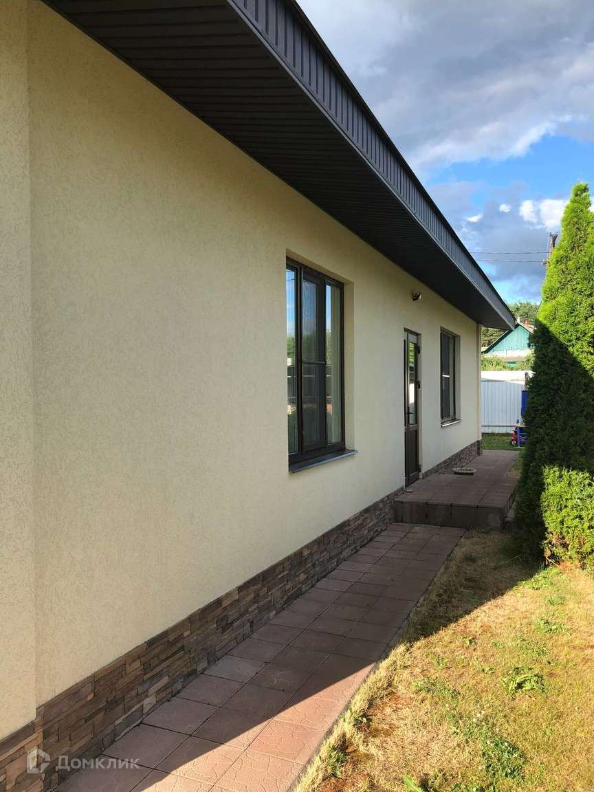 Конструктив: И дом и баня построены в одной стилистике. Фундамент монолитная плита, стены из газосиликатных блоков, облицованные штукатуркой. Кровля выполнена из мягкой черепицы, подбой, водосточная система. Установлены хорошие пластиковые окна.