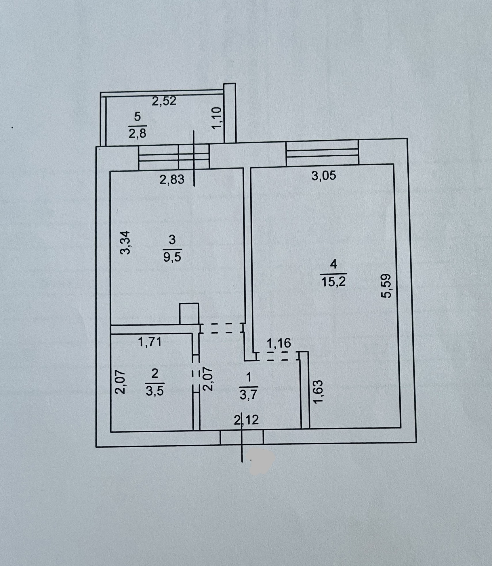Жилая площадь 15.2 м2