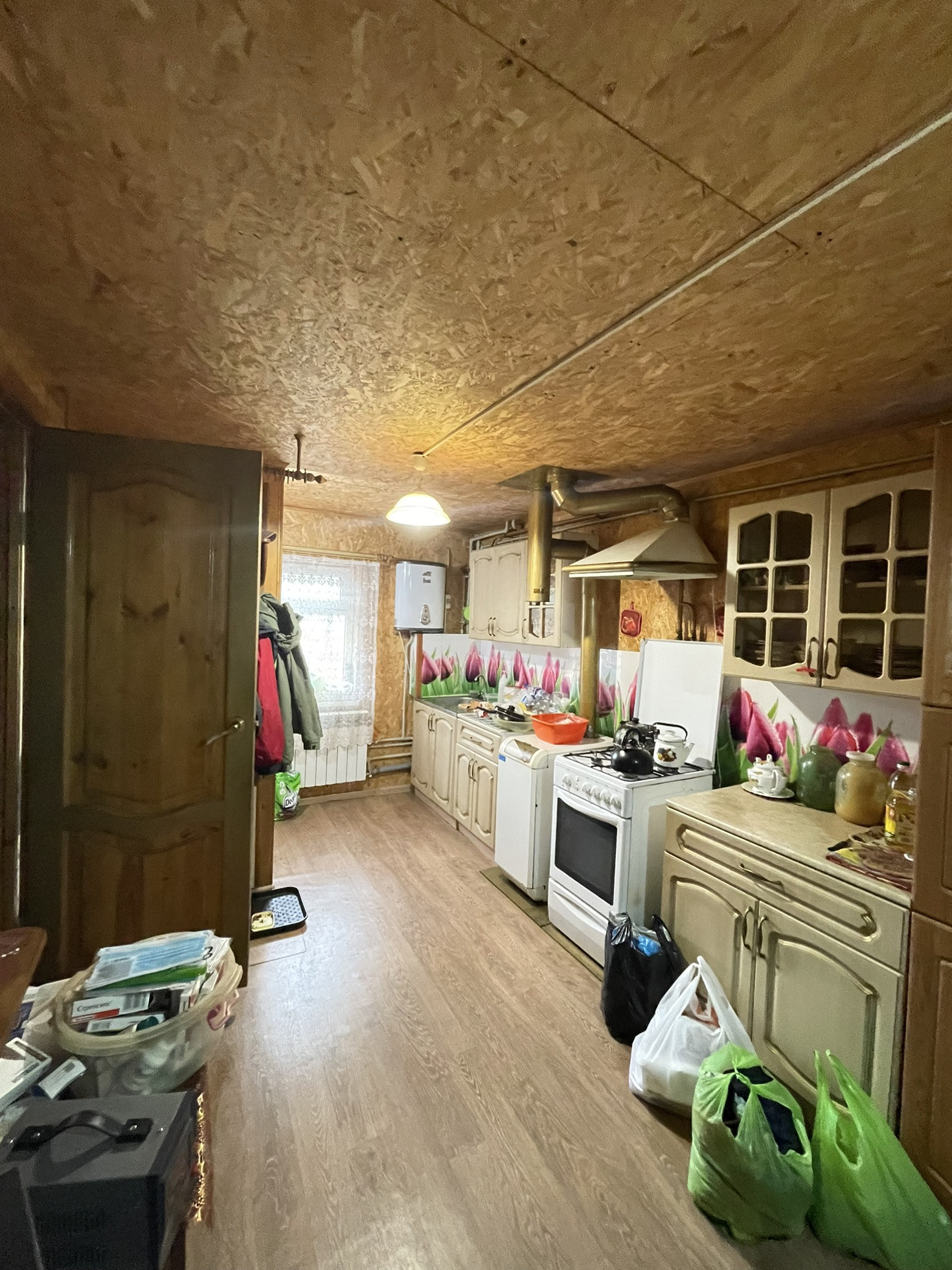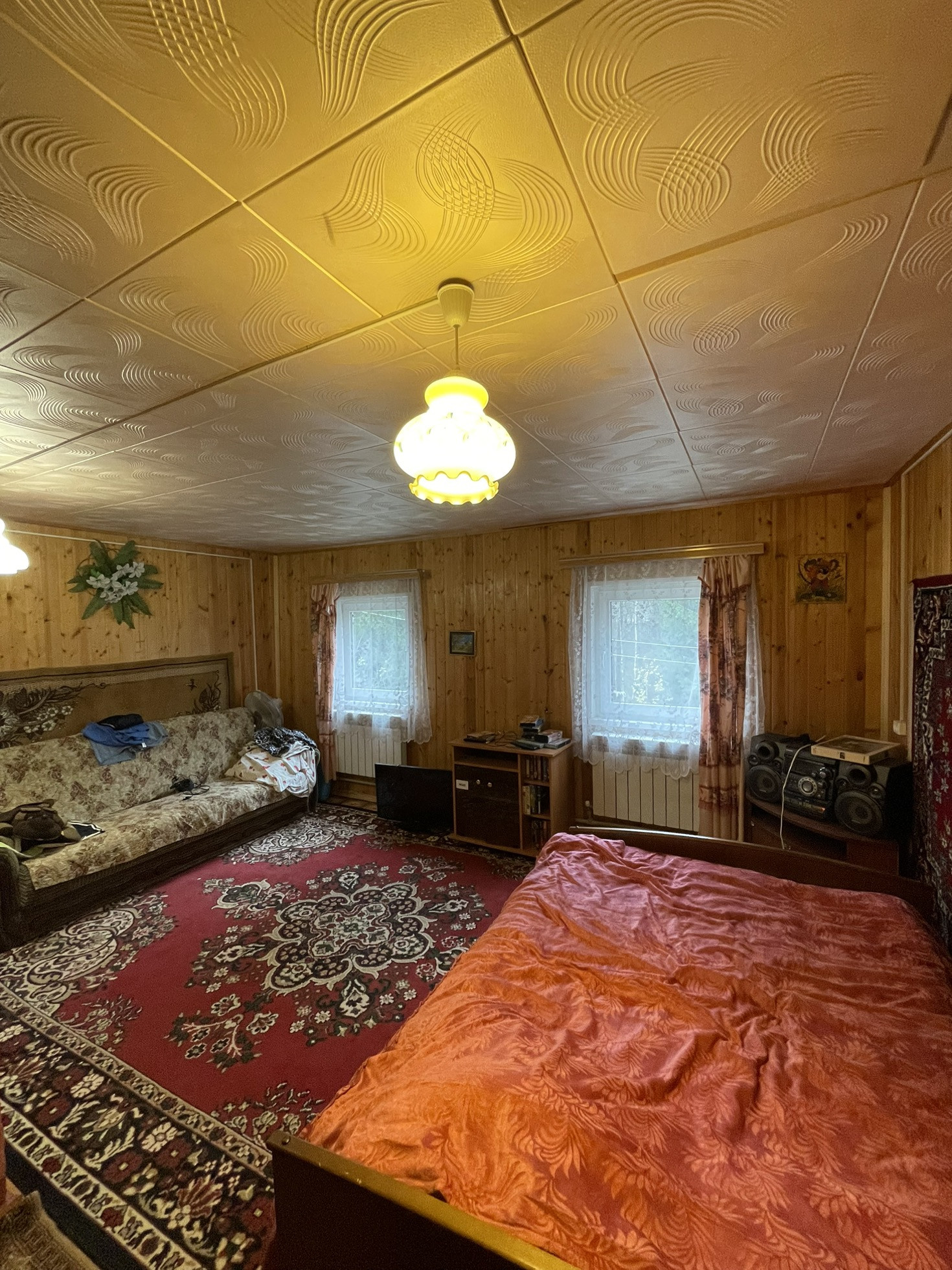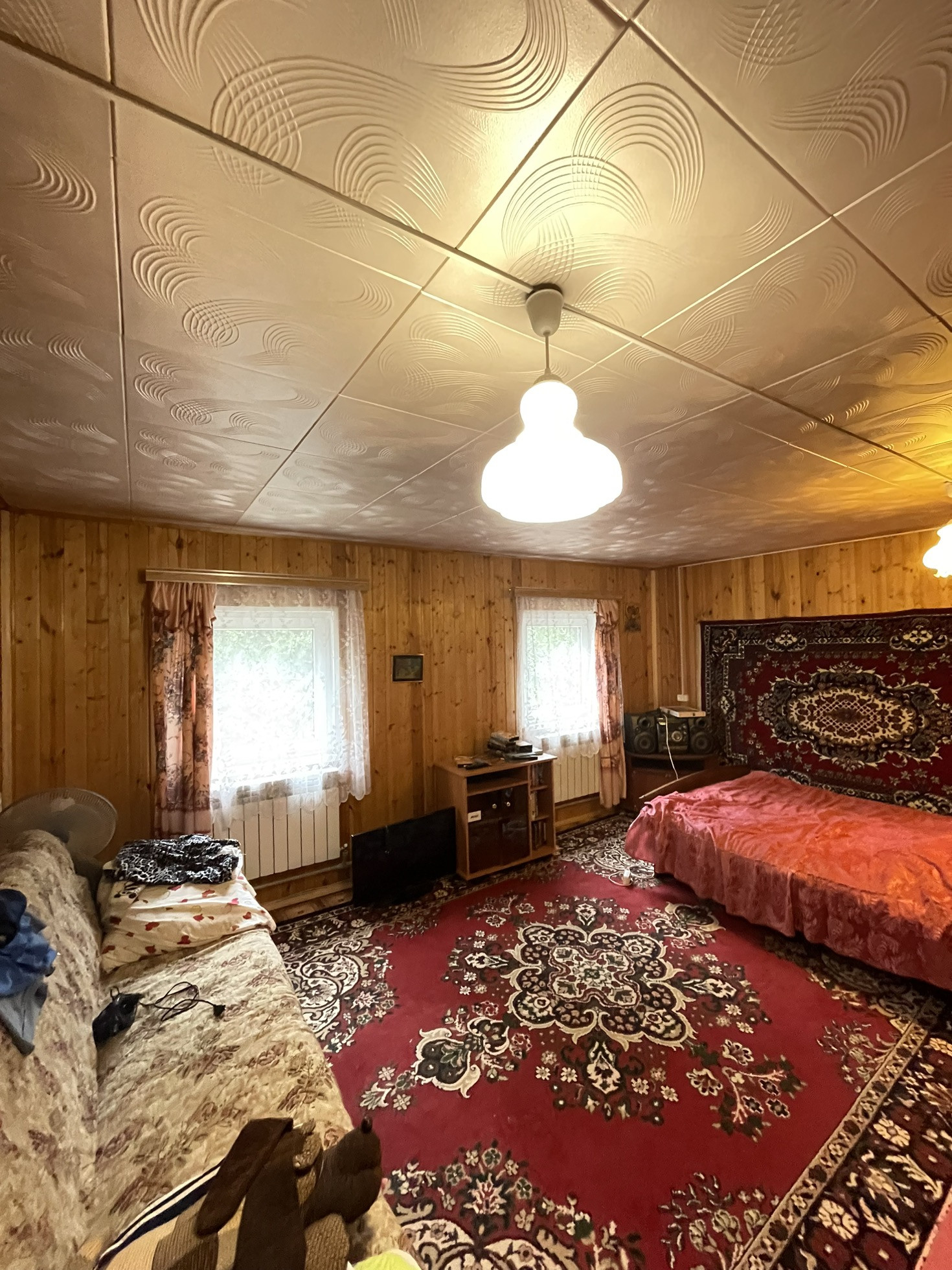 Площадь дом составляет 100 квадратных метров. В доме 4-изолированные жилые комнаты, кухня-столовая и ванная комната. Все комнаты просторные и светлые. В гостинной находится уютная русская печка которая создает дополнительную атмосферу тепла и комфорта.