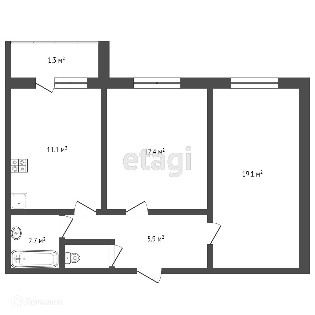 Общая площадь 45.7 м2