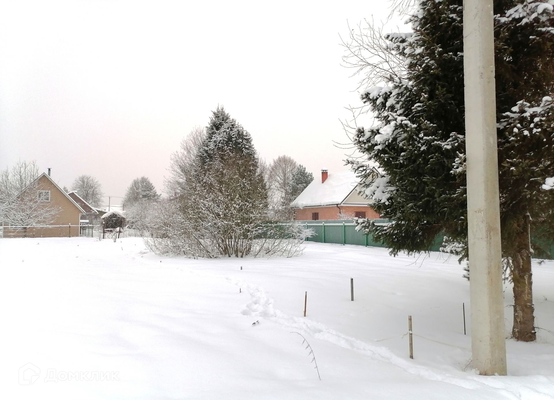 Участок расположен в 3 километрах в сторону от Ленинградского шоссе, что позволяет насладиться чистым воздухом  и спокойным отдыхом. Деревня выстроена на холме, поэтому земля не заболочена. Участок имеет правильную прямоугольную форму. Соседи построились и проживают круглогодично. Дорога до участка асфальтирована. Электричество проведено по границе участка.