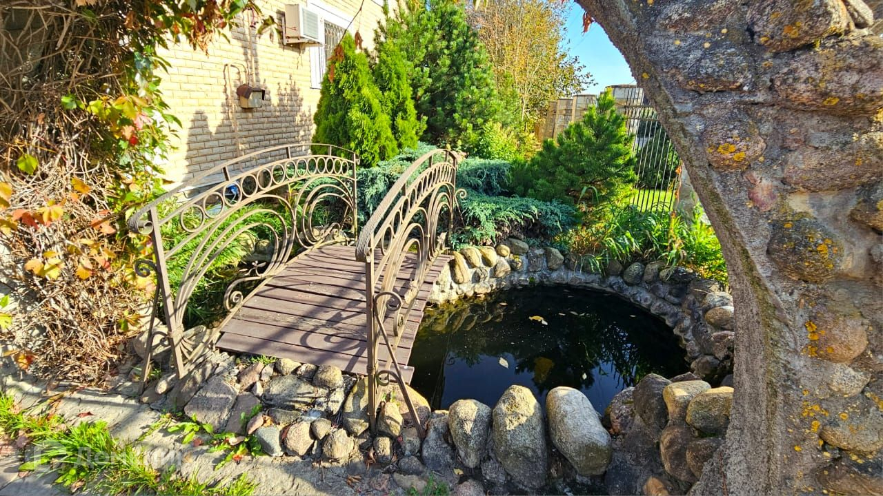 Участок достоин отдельного внимания. Шикарный ландшафтный дизайн, продуманное зонирование и множество кустарников, деревьев и многолетних цветов! На участке есть декоративный пруд с мостиком, навес для автомобиля, яблоневый сад, виноградник, зона под огород, беседка, навес для автомобиля и даже своя пасека! Также есть баня, которую можно использовать как гостевой дом, хозяйственное помещение и площадка под бассейн. С участка есть прямой выход к большому зарыбленному пруду со своим пирсом.