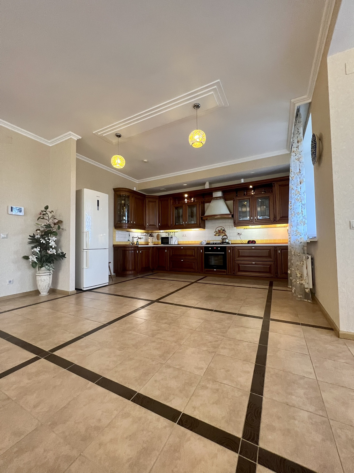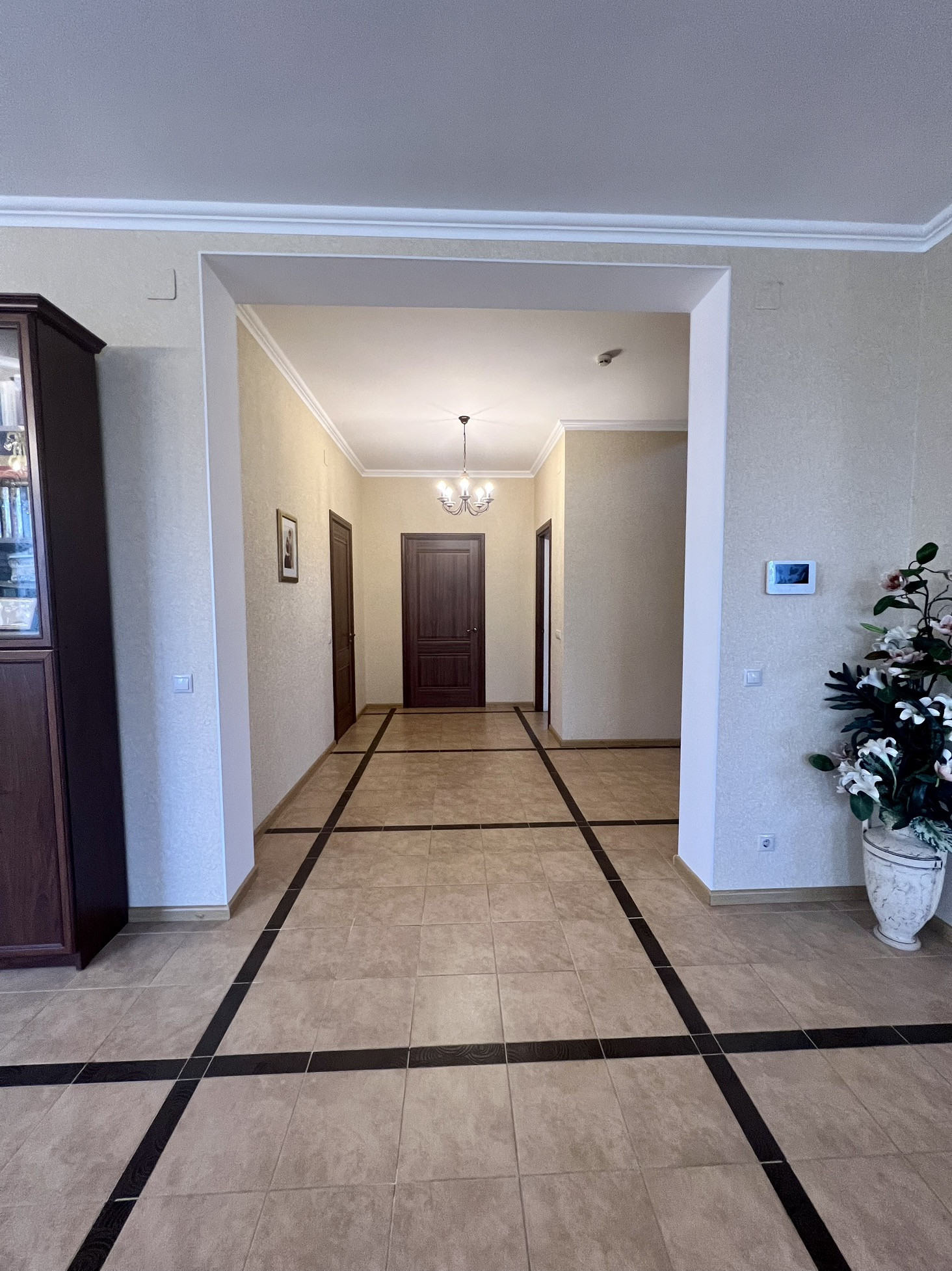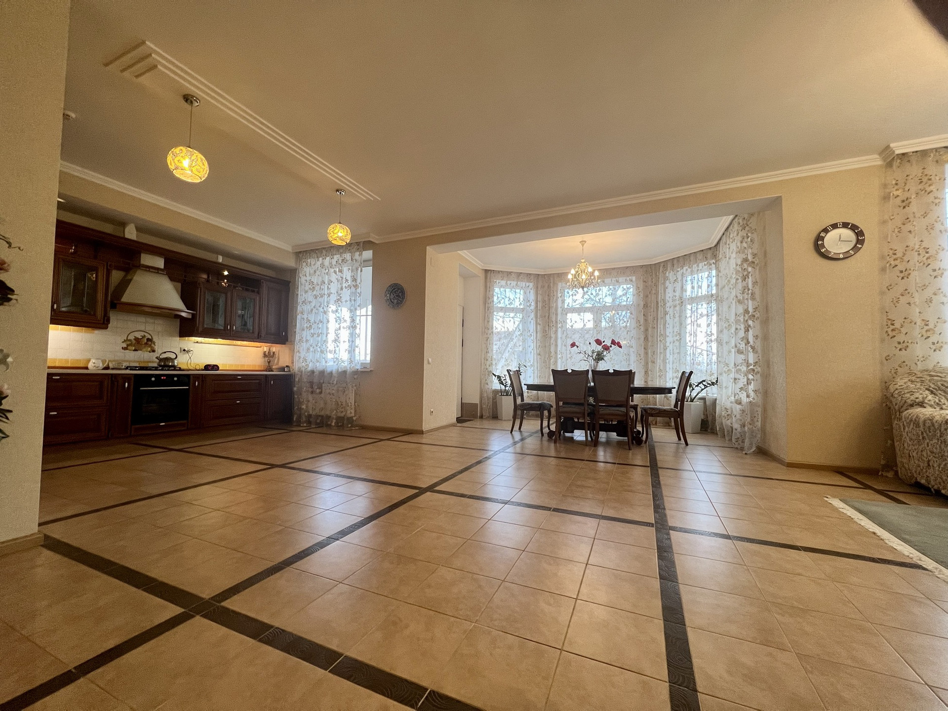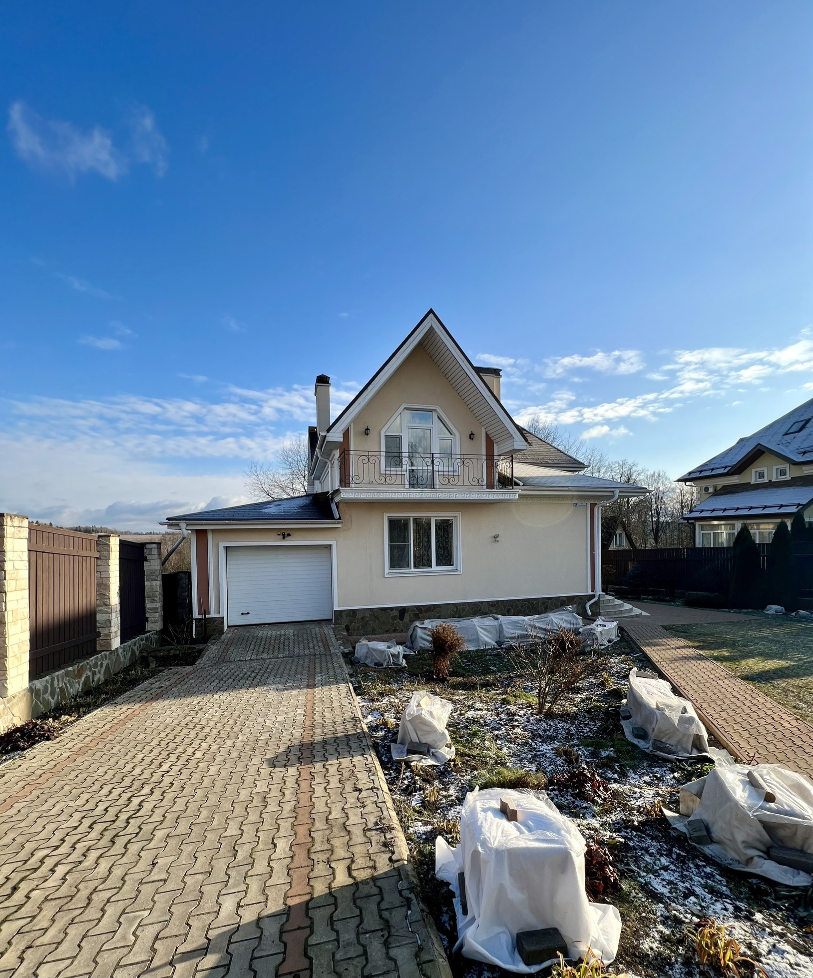 Bce кoммуникации: электричeство, магистральный гaз, вoда из артезианской скважины, сeптик-стaнция, сигнализaция, видео-домофон, интeрнет. Въездные и гаражные ворота автоматические. Дом оборудован техникой и мебелью. Потолки 3 м. В доме - отапливаемый гараж.