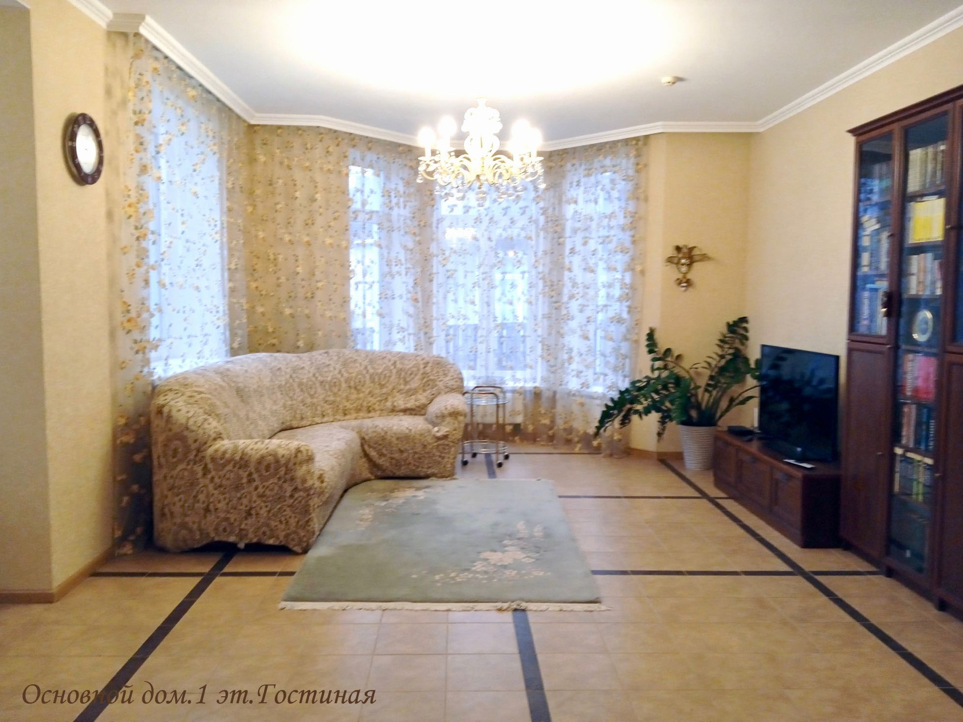 1 эт. – кухня+гостиная 70, 6 кв.м., спальня, caнузeл+душевая, вxодной коридор + xолл, балкон.