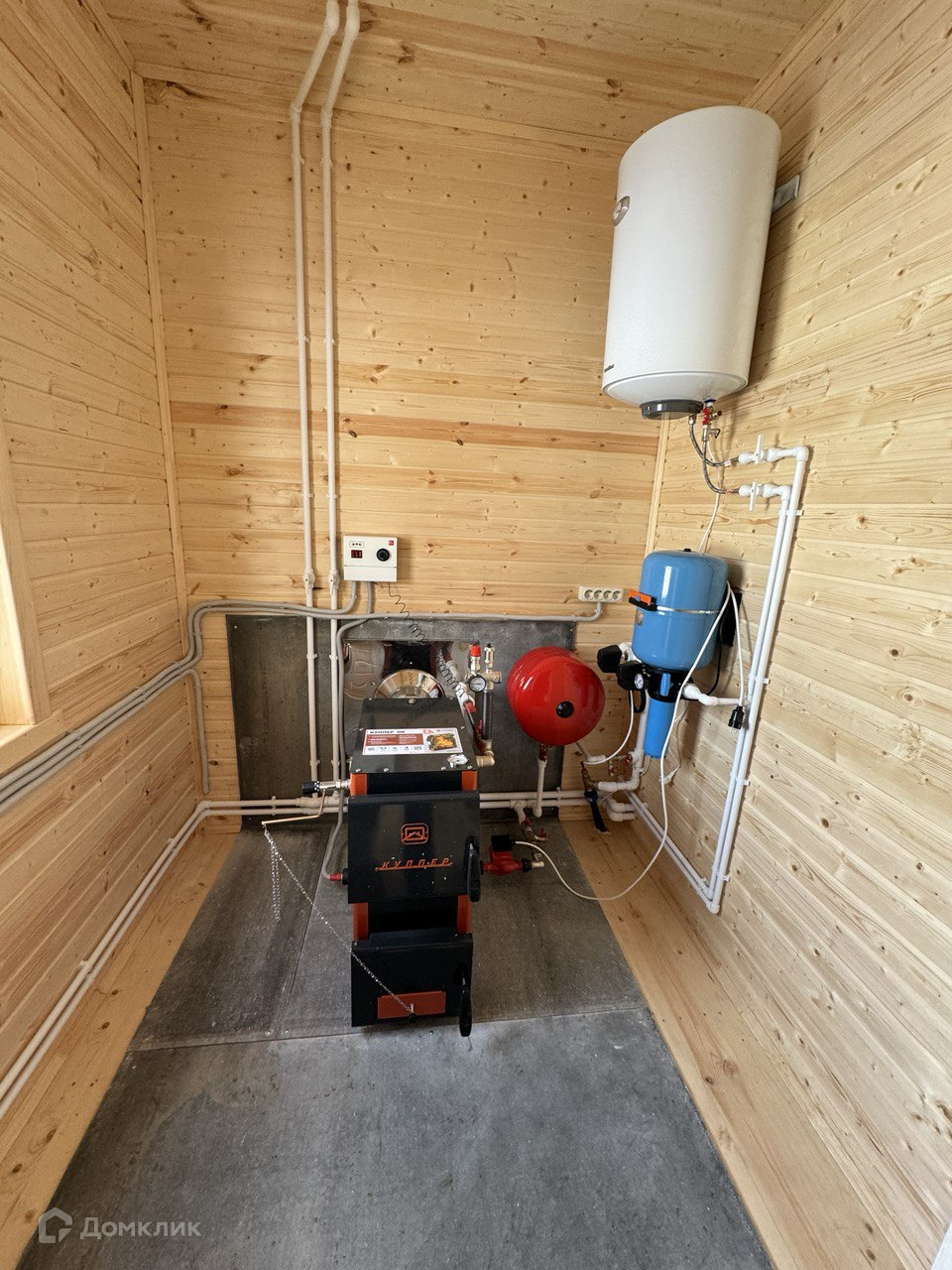 - Отопление – современный гибридный котел Теплодар с возможностью отапливать дом электричеством и твердым топливом (дрова, уголь, брикеты и прочее).