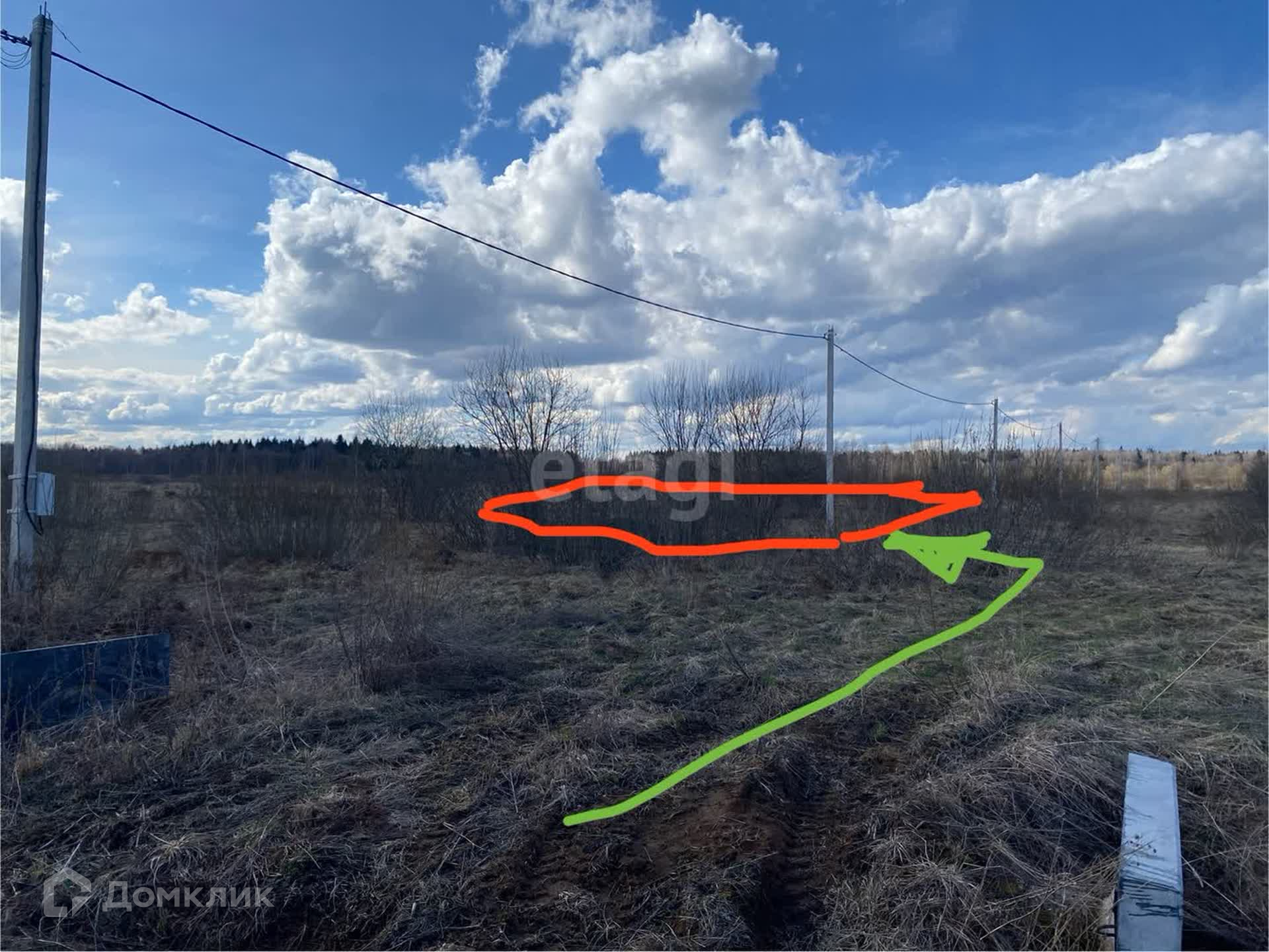 Участок ровный, без подъемов. Также рядом находится столб с электричеством.