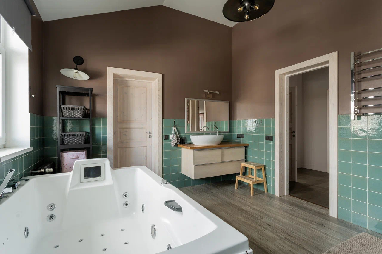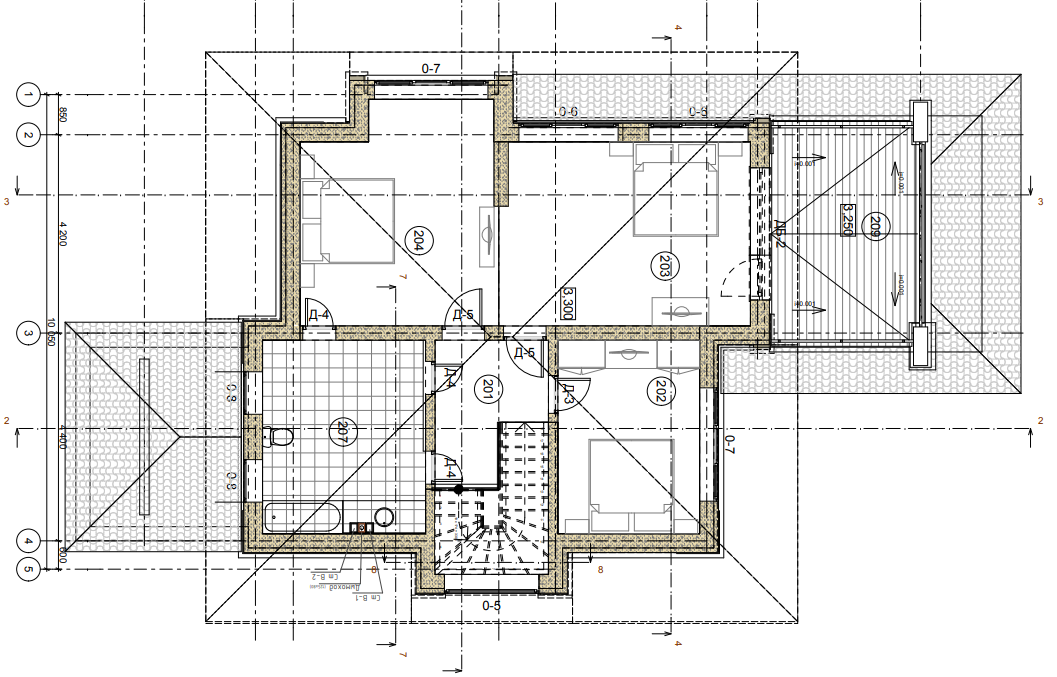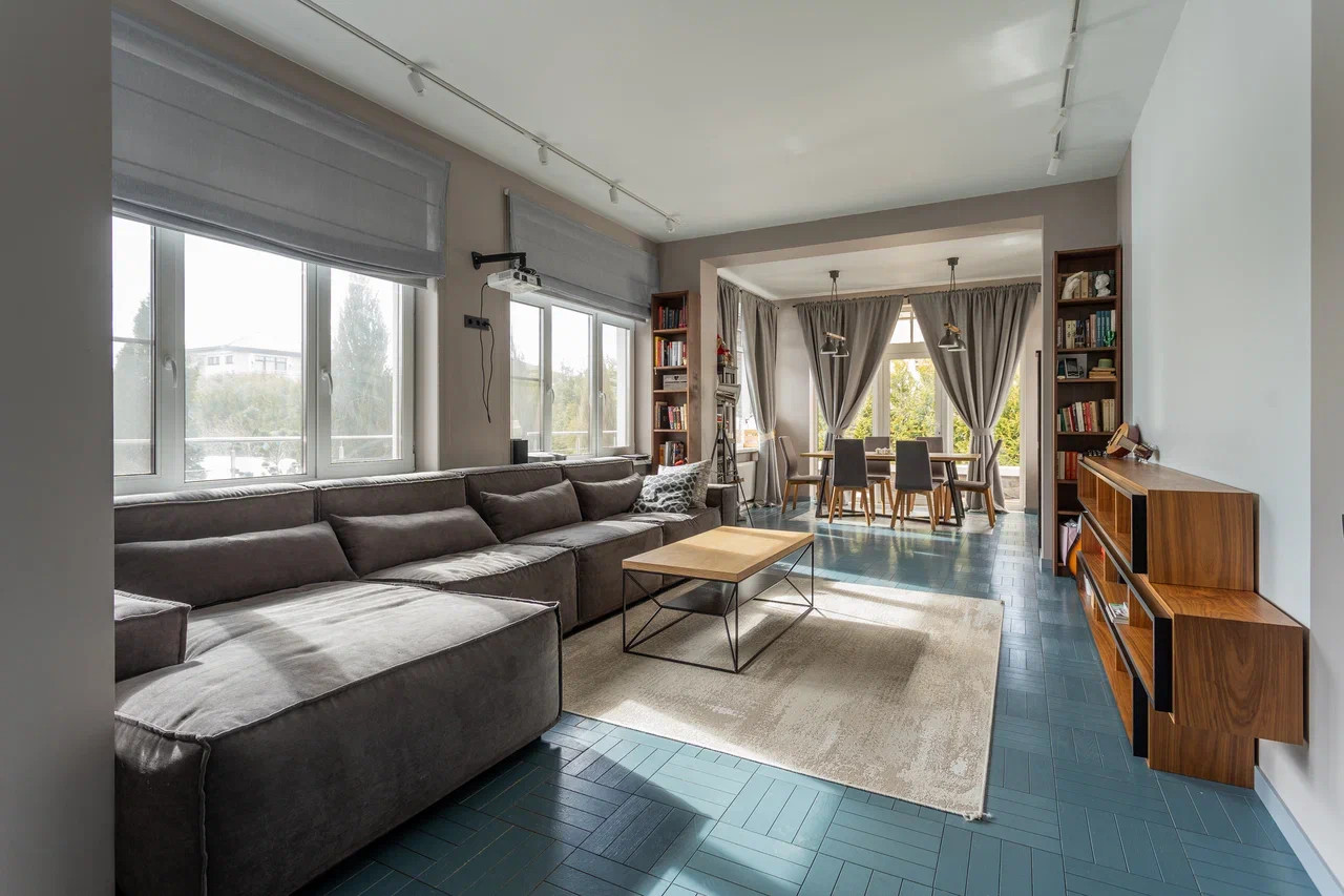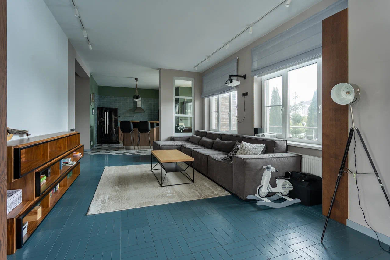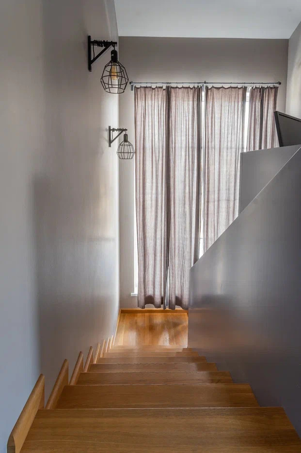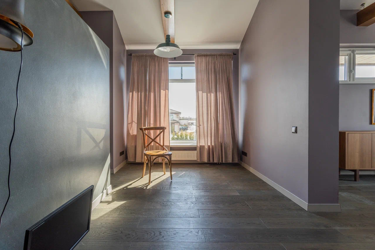На втором этаже: детская комната и спальня с отгороженной гардеробной зоной, совмещенный санузел с ванной и душевой кабиной. Из спальной комнаты есть выход на балкон-террасу.
