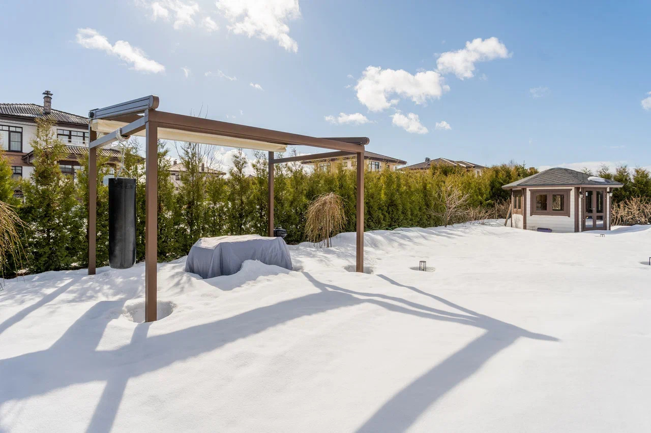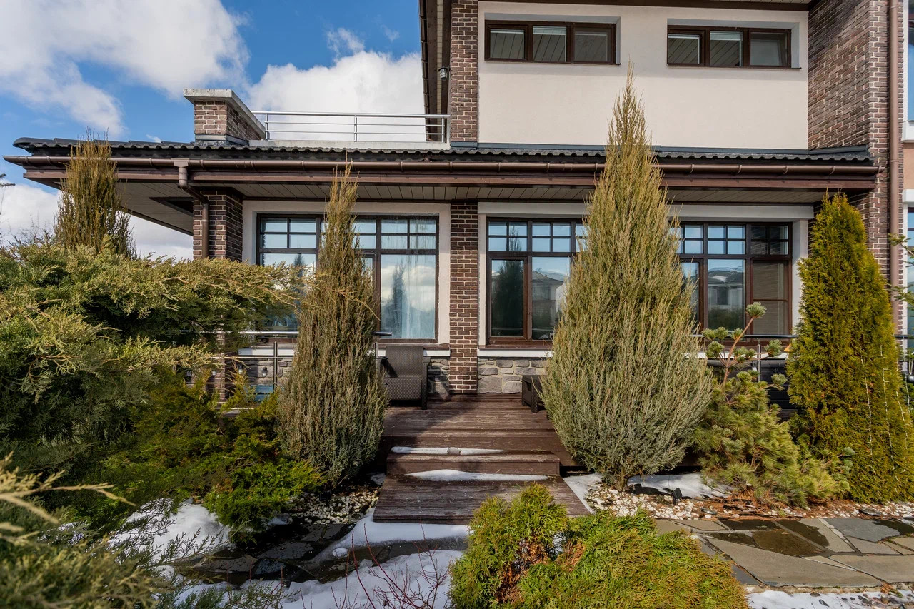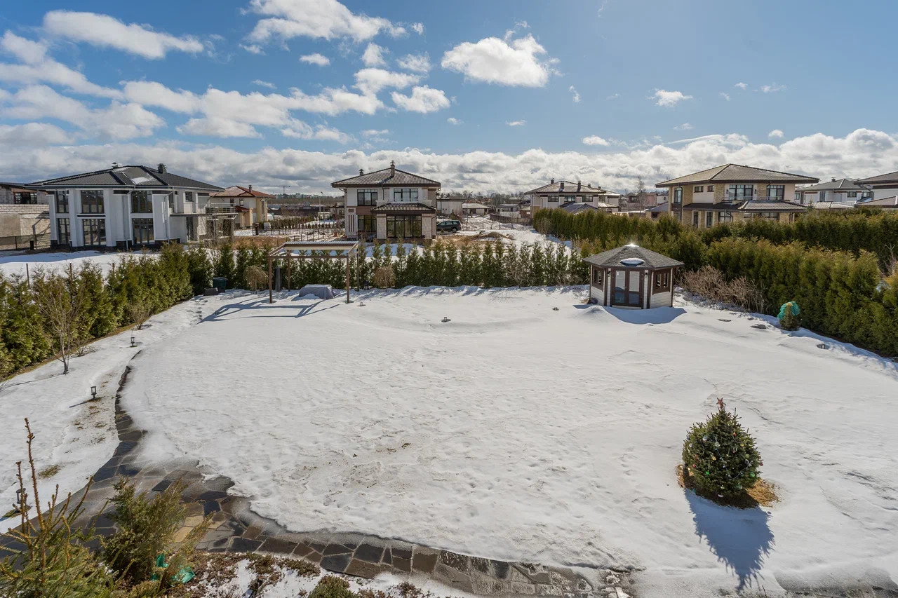 Участок полностью облагорожен: газон, мощение природным камнем (шунгит), высажено много хвойников - живая изгородь из туй, елей, можжевельников, пихты. Декоративные растения: рододендроны, разнообразные осоки, прованские травы. Плодовые деревья: яблони, вишня, груши. Кустарники: смородина, черноплодная рябина, крыжовник, голубика. Полуавтоматический полив. На участке построены зона отдыха с обеденным столом (под навесом с электроприводом) и детский домик. Также организована зона отдыха на придомовой террасе с южной стороны.