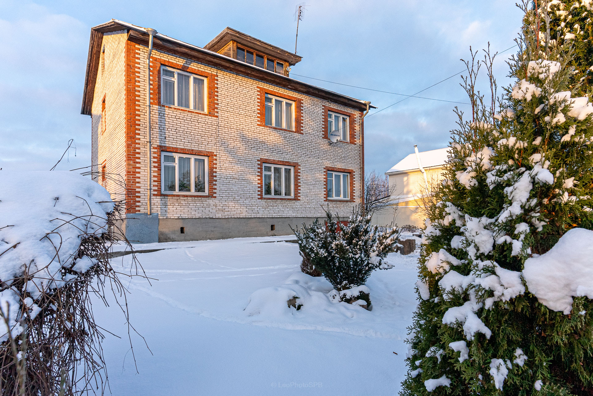 Дом рядом с Петербургом, но в далеке от шумных трас и городской суеты, окружен коттеджной застройкой однородного социального статуса.