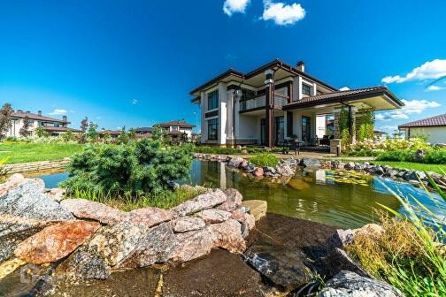 Коттедж 1000 кв.м построен для большой и дружной семьи. На первом этаже располагается кухня, с обеденной зоной( изюминка -это большие панорамные окна ) ,детская игровая, санузлы, также сделана спа-зона, хаммам, сауна , бассейн, спортзал.