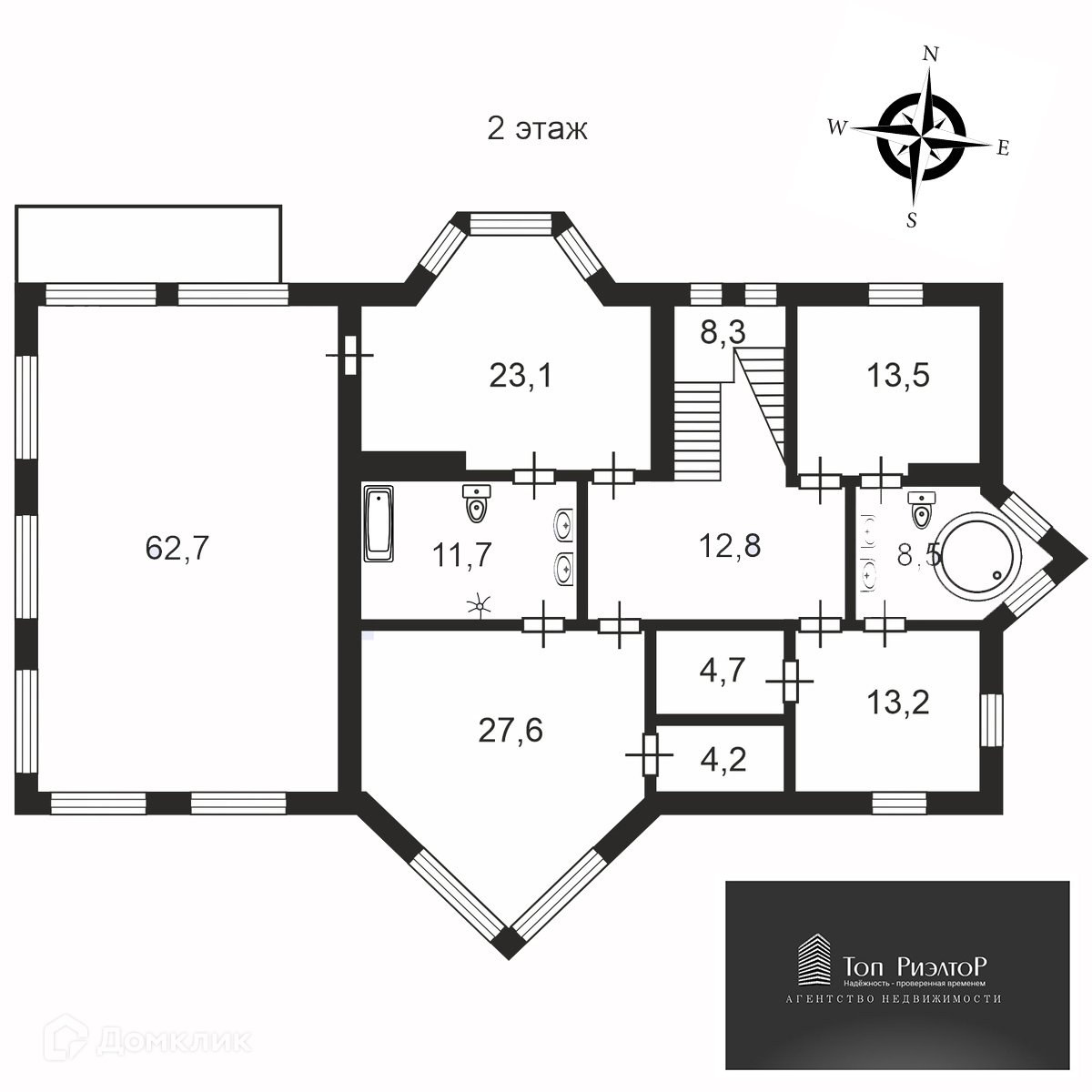 Пространство 2 этажа включает в себя – 4 комнаты ( комната 27,6 кв.м со вторым светом), 2 санузла, 2 гардеробные и спорт зал 62,7 кв.м.