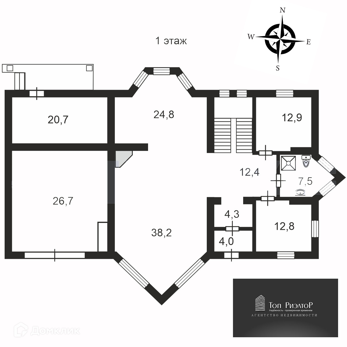 На 1 этаже расположены - кухня гостиная 63 кв.м с камином, комната, санузел и хозяйственная комната. Котельная с отдельным входом.