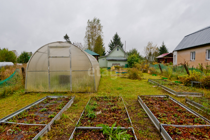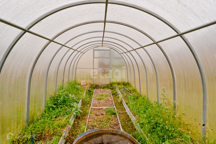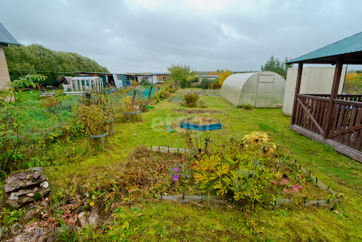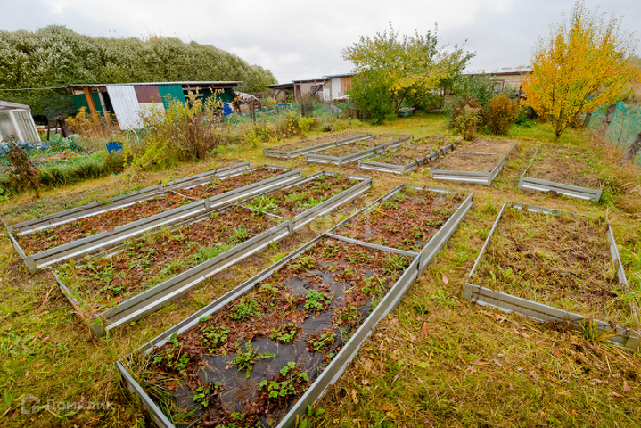 Участок 5 соток, разработан. Растут и плодоносят кусты крыжовника, красной/черной/белой смородины, яблони и груши, кусты малины. Установлены новые оцинкованные грядки. Три гряды клубники и еще несколько грядок под другие овощные культуры. Имеется большая теплица из поликарбоната.
