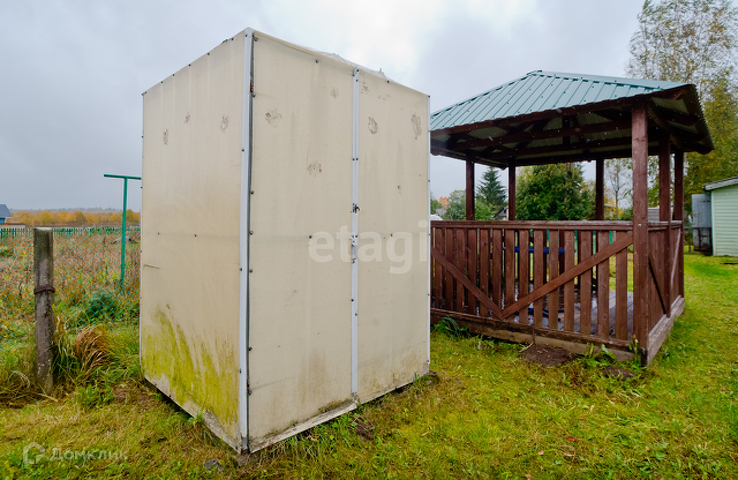 Большой плюс участка в том, что на нем есть практически новая баня из бруса, обшитая евровагонкой. Примерная стоимость на сегодняшний день этой бани 340 т.р. А вам она достанется вместе с участком, дачным домом и беседкой, летним душем.