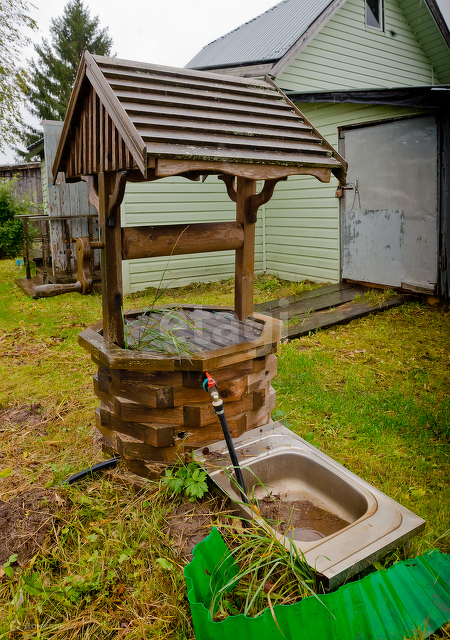 На участке выкопана скважина, вода заведена в баню.