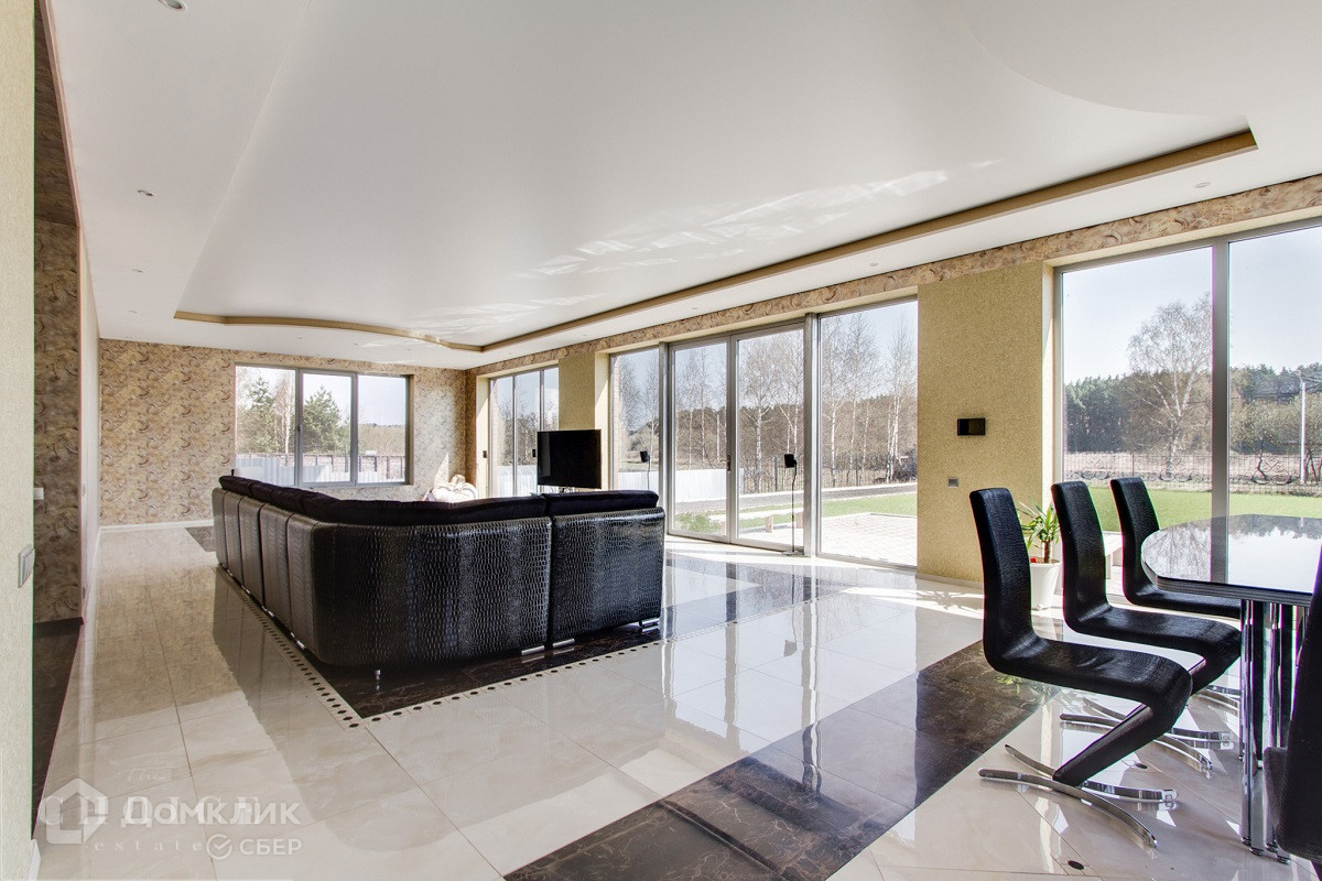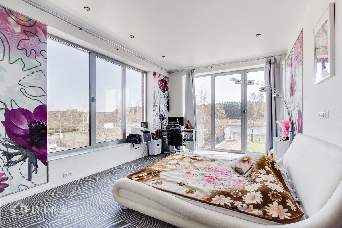 Предлагаем на продажу современный дом с мебелью 298 квадратных метров на берегу реки Москва. Где из панорамных окон открывается прекрасный вид.
