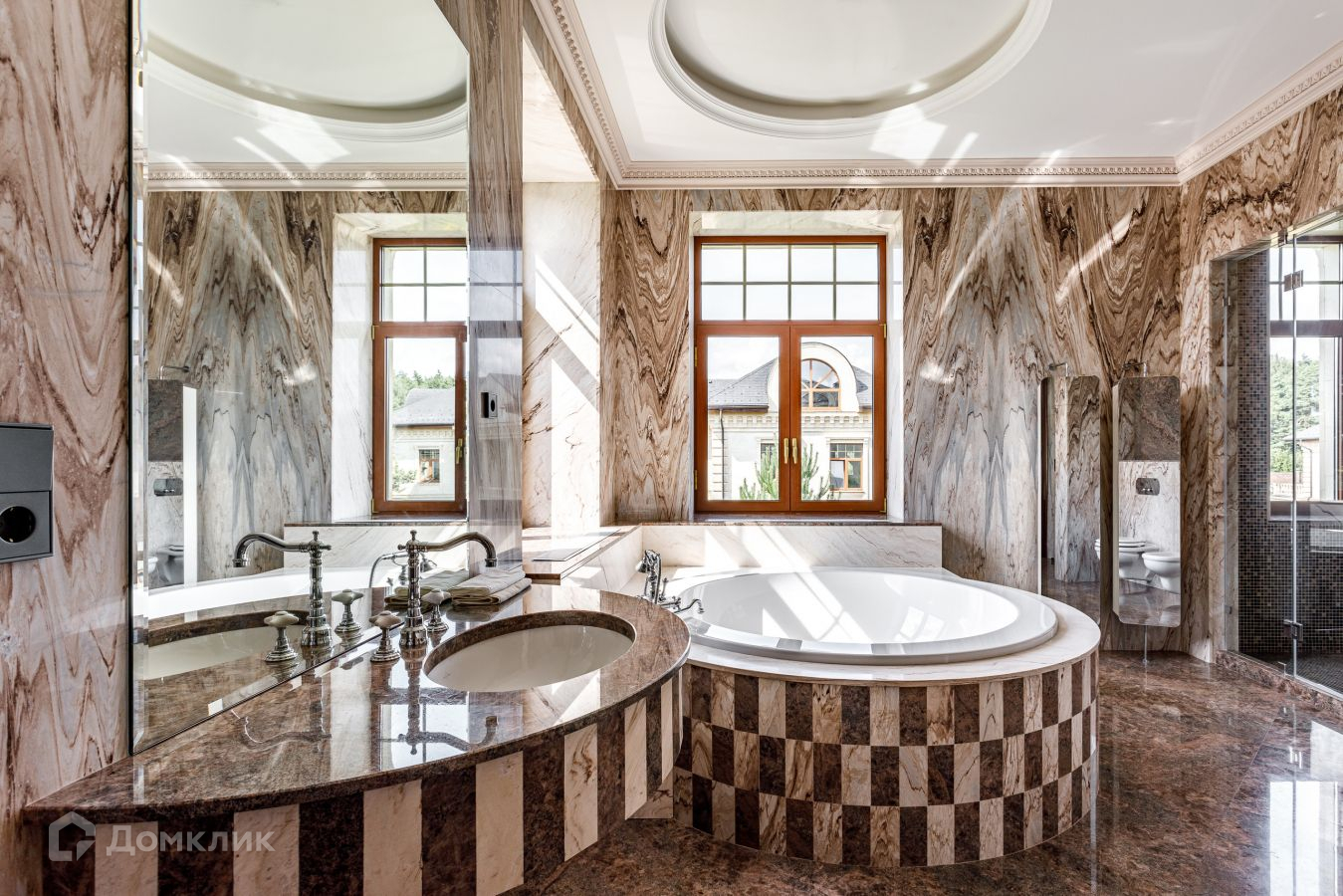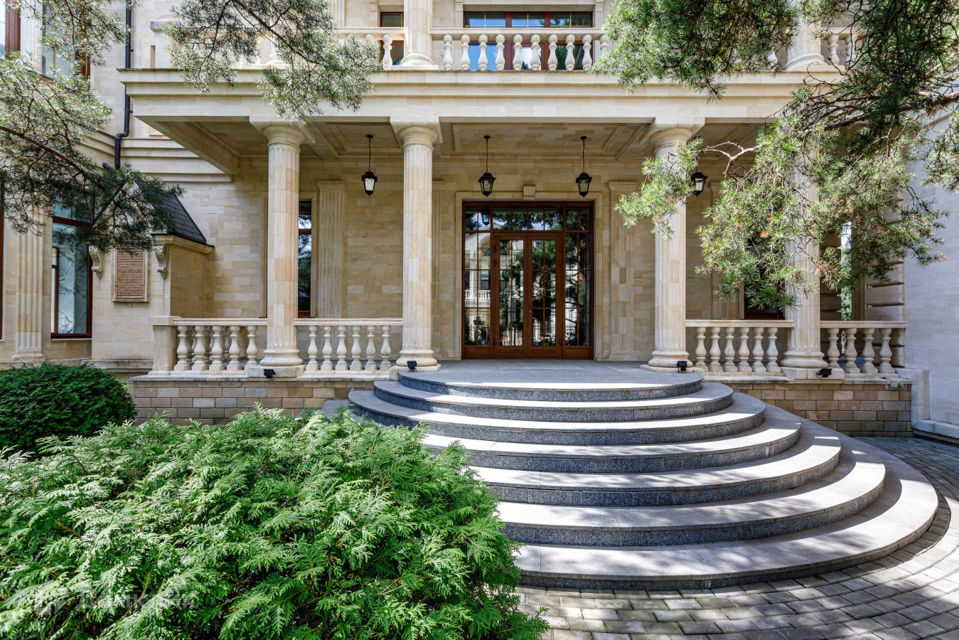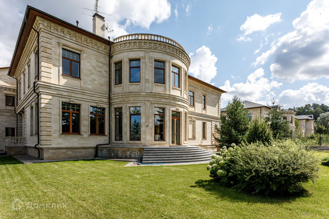 Предлагается шикарный дом площадью 1200 кв.м. Дом "под ключ", с мебелью.  Фасад облицован натуральным камнем. Площадь участка 21 сотка выполнен ландшафт: газон, высажены крупномерные деревья, декоративные кустарники  . Участок ровный правильной формы. На участке есть гараж с квартирой для персонала. Коммуникации центральные. Аристократическая роскошь и изысканный стиль воплотились в этом проекте. В отделке и строительстве дома использовались самые надежные и качественные материалы. На цокольном этаже расположились технические помещения, постирочная. Планировка первого этажа: прихожая, с/у, гардеробная, бассейн, хамам, сауна, душевая, с/у, кухня, столовая, гостиная; второго этажа: библиотека, кабинет, 3 спальни с гардеробными и ванными комнатами; мансарда: бильярдная, домашний кинотеатр, с/узел. Номер в базе: J8956
