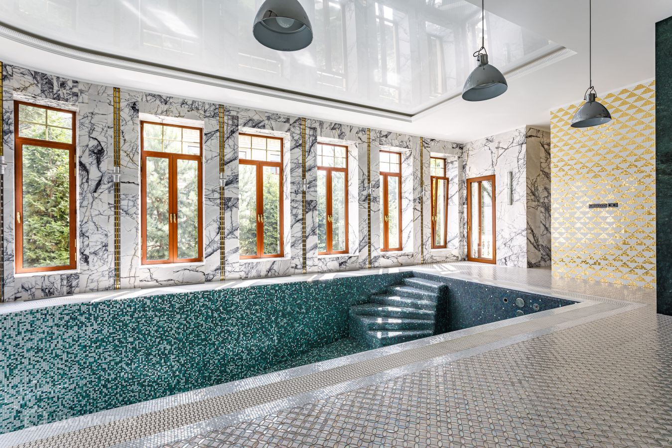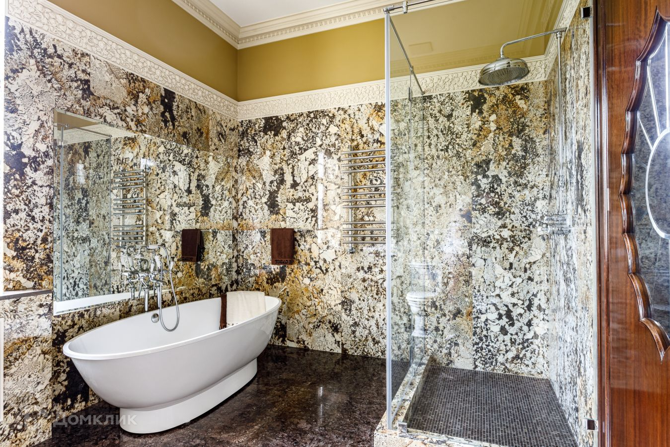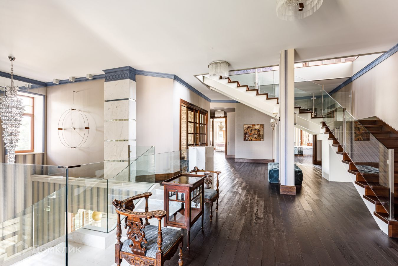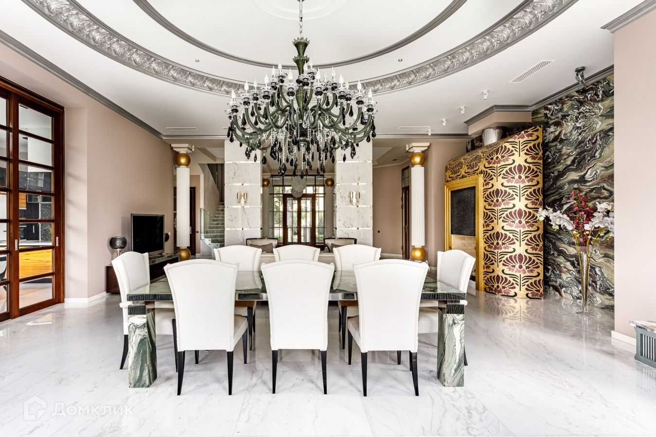 Предлагается шикарный дом площадью 1200 кв.м. Дом "под ключ", с мебелью.  Фасад облицован натуральным камнем. Площадь участка 21 сотка выполнен ландшафт: газон, высажены крупномерные деревья, декоративные кустарники  . Участок ровный правильной формы. На участке есть гараж с квартирой для персонала. Коммуникации центральные. Аристократическая роскошь и изысканный стиль воплотились в этом проекте. В отделке и строительстве дома использовались самые надежные и качественные материалы. На цокольном этаже расположились технические помещения, постирочная. Планировка первого этажа: прихожая, с/у, гардеробная, бассейн, хамам, сауна, душевая, с/у, кухня, столовая, гостиная; второго этажа: библиотека, кабинет, 3 спальни с гардеробными и ванными комнатами; мансарда: бильярдная, домашний кинотеатр, с/узел. Номер в базе: J8956
