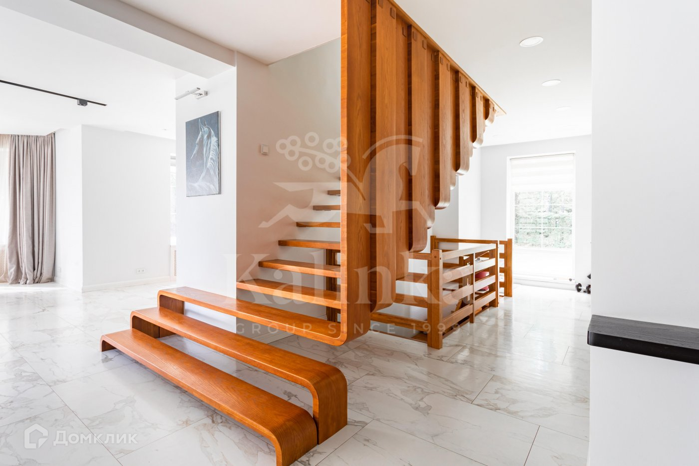 Просторный дом с современным ремонтом и удобной планировкой. Украшение дома-лестница уникального дизайна из кедра.