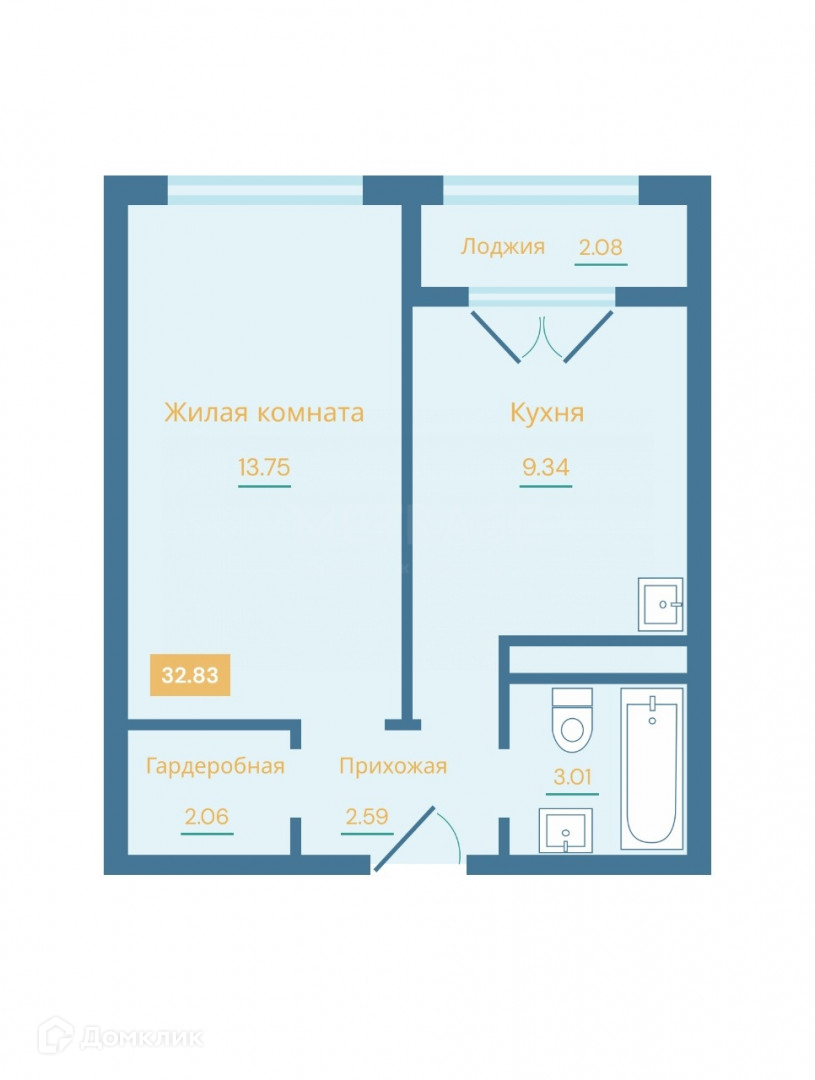 Общая площадь 32.83 м2