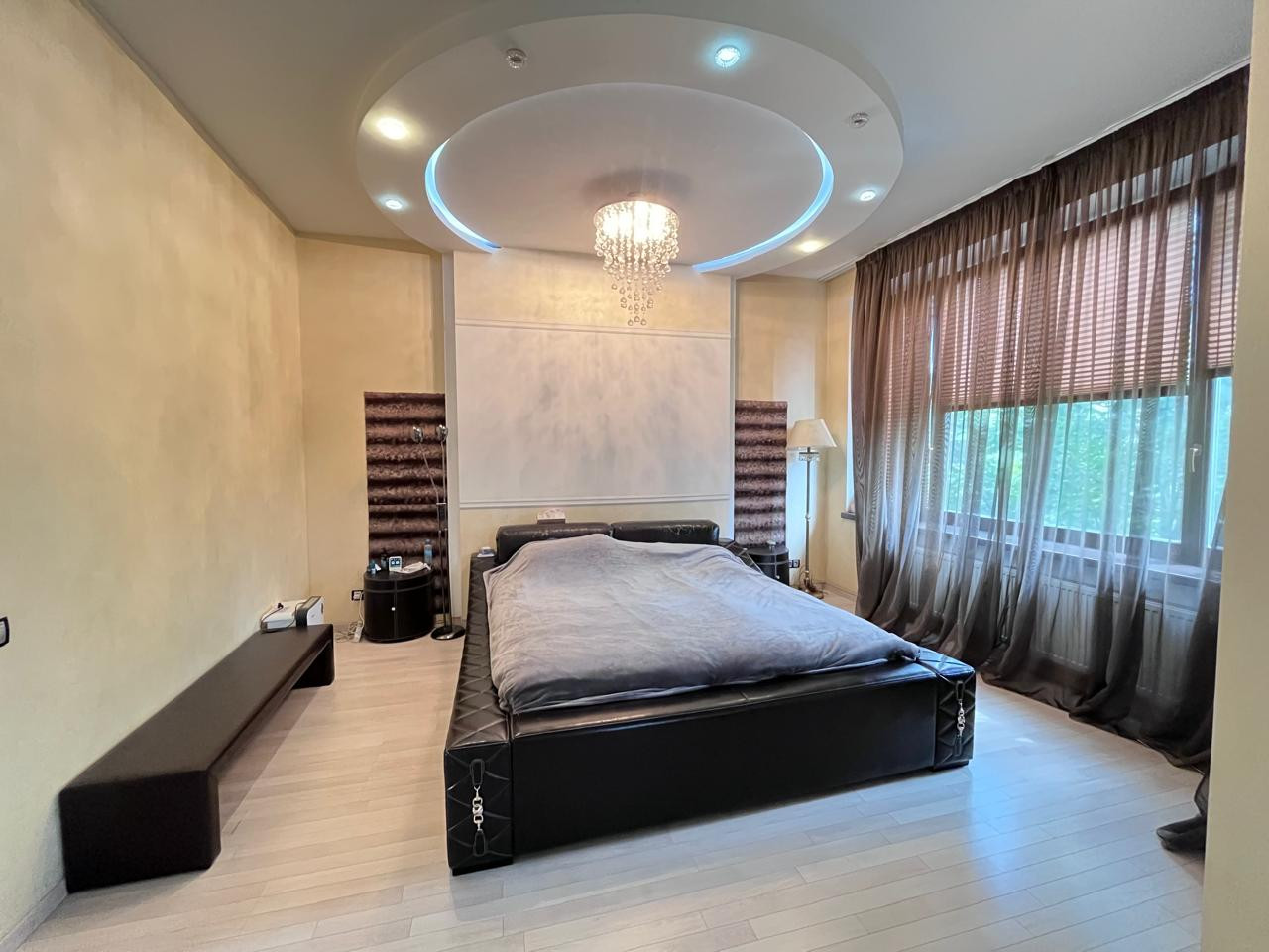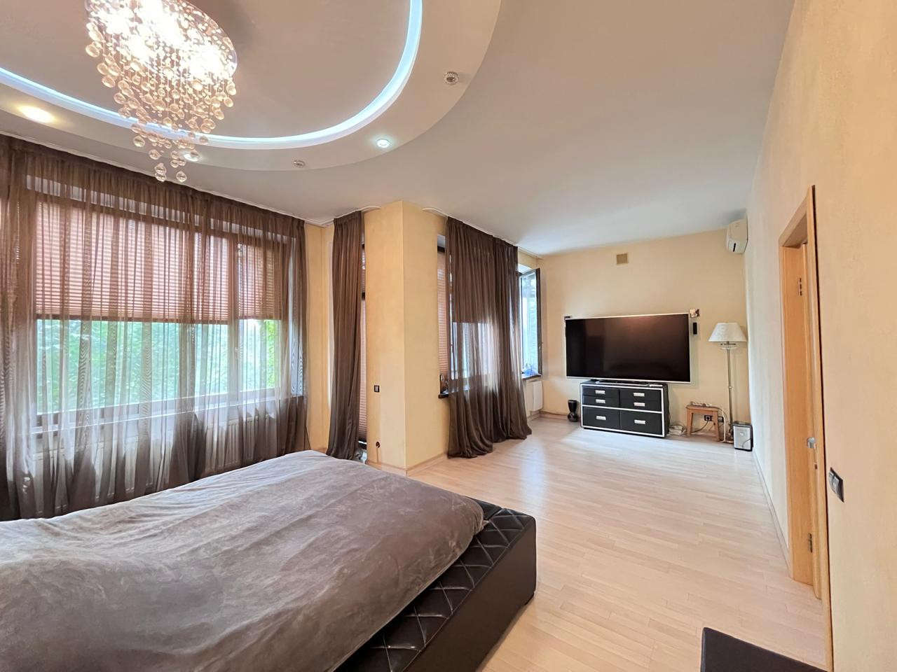 На втором этаже находятся: огромная спальня с балконом, гардеробная, с/узел с джакузи и душевой 20 м2.