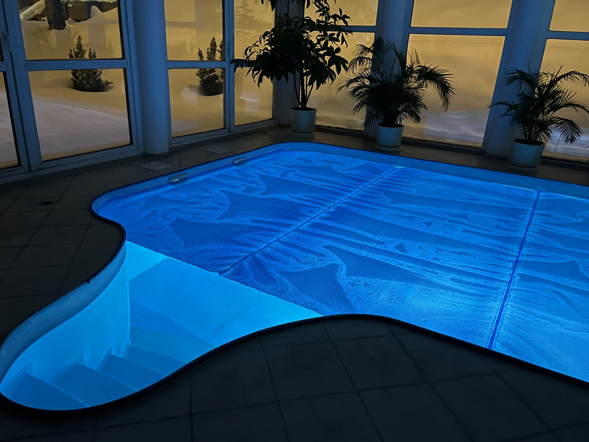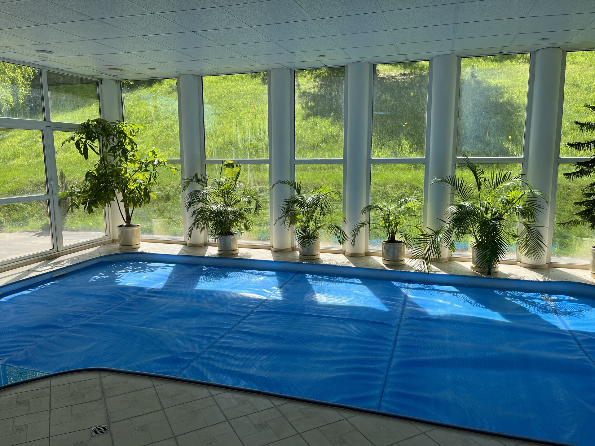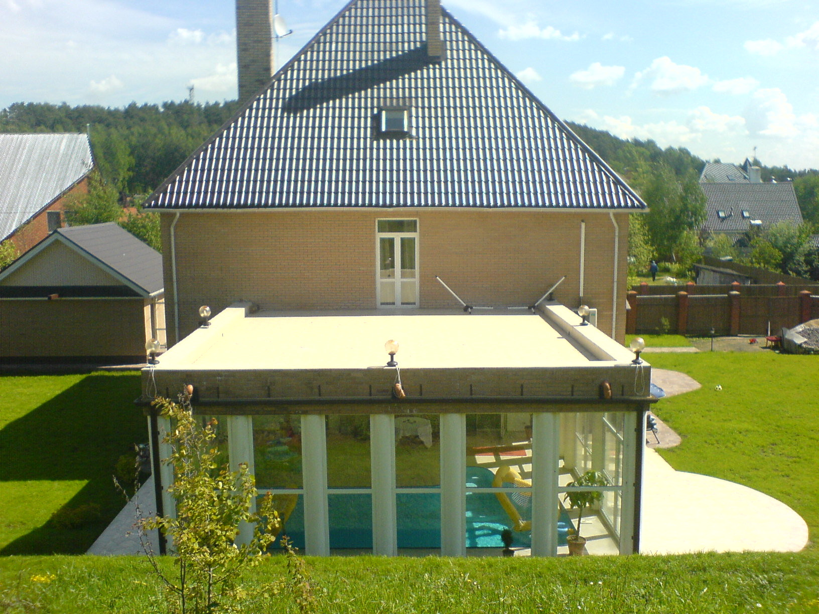 Бассейн круглогодичный, с панорамным остеклением, теплый (нагрев возможен до 40 градусов) с прекрасным видом. Глубина 2 м. - можно нырять головой. Совмещен с сауной и паровой кабиной. Идеальное семейное жилье и место приема друзей.