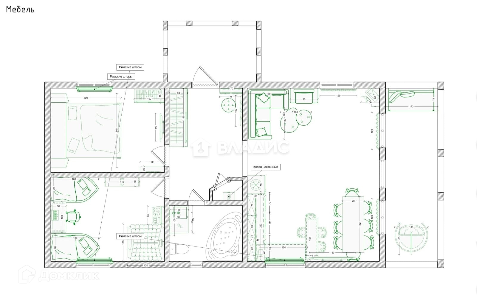 Утепление кровли - 250 мм. Потолки - натяжные, высота - 270 см.