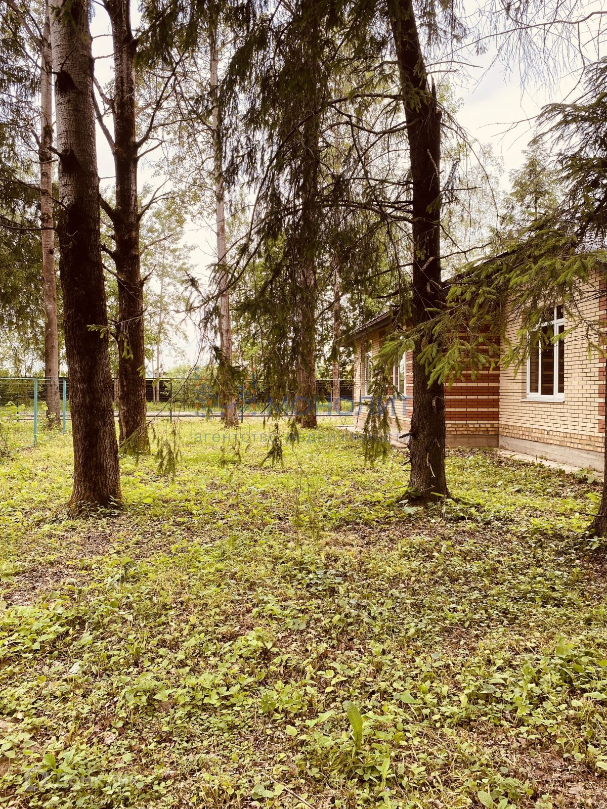 На участке площадью 9,1 сотка расположен дом в окружении различных вековых деревьев, вокруг дома выполнена отмостка.