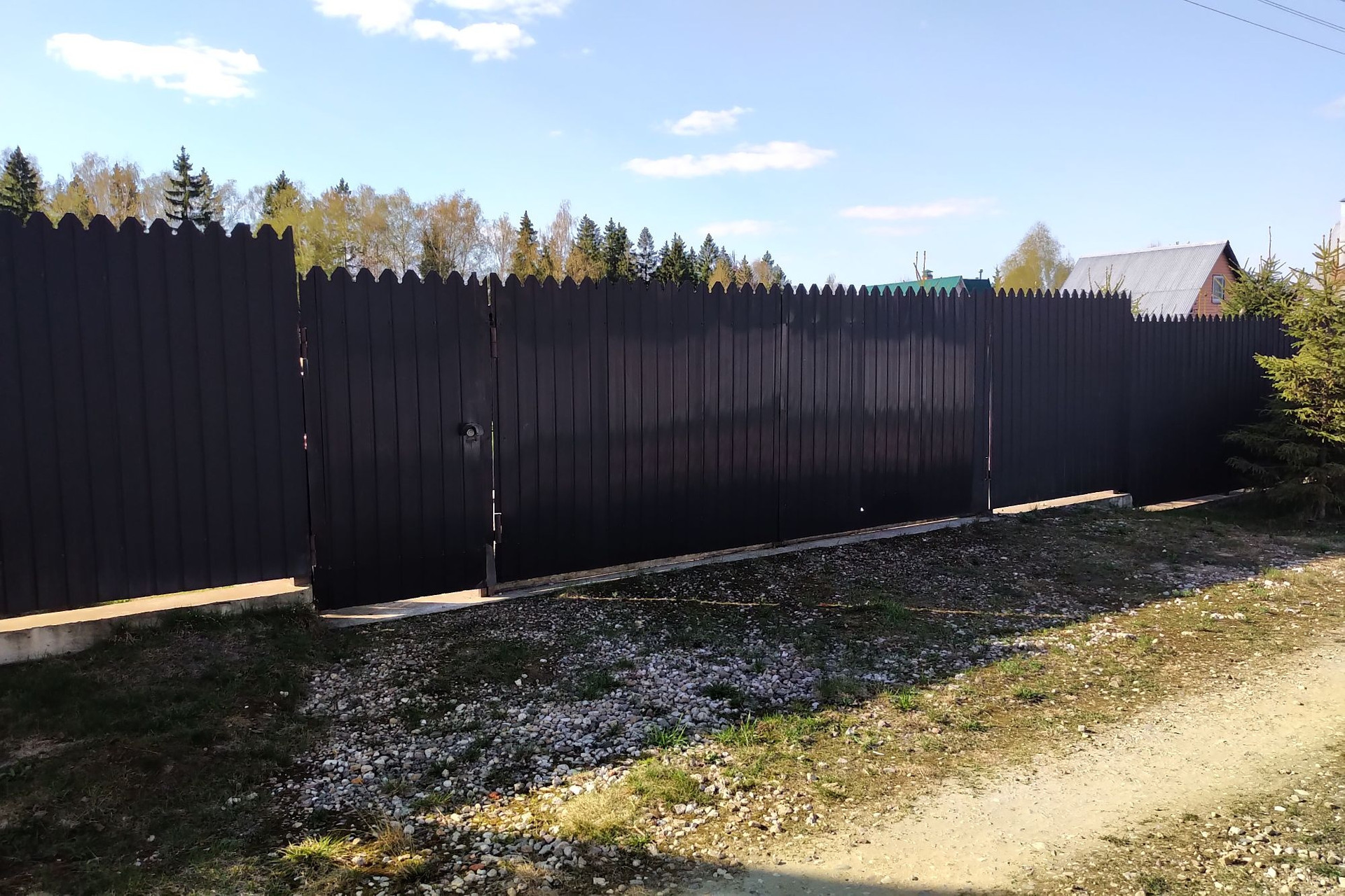 e) забор-полностью огражден